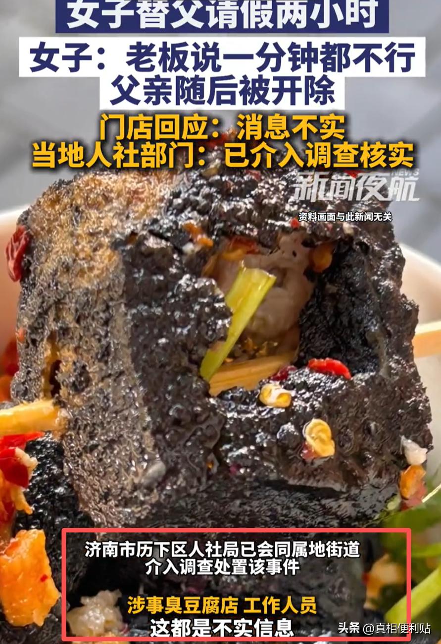 这下事情闹大了!山东济南,女子假期后准备回外地上班,临走前就想着和父亲吃顿饭,于是替父亲和打工的店铺请了两个小时的假,结果店家却说1分钟都不行,还直接把她的父亲辞退,女子直接硬刚到底,来到店前讨要说法。 李女士一直记得今年春节那几天,父亲几乎是把人“钉”在油锅前的。 济南街边那家炸臭豆腐摊生意旺,油烟从早到晚没停过,父亲负责掌勺,站在滚烫的锅边,一天里能坐下来的时间不多,吃饭也是随便扒两口就继续干。 连续干了六天,中间只休了一个白天,家里人想凑一顿团圆饭都很难,总是对不上时间:你刚把菜热好,他又被叫回去出锅、装袋、收钱。 年过去了,李女士要回外地上班,行李收好了,车票也买好了,她只想在走之前,跟父亲好好吃一顿饭,哪怕就是简简单单两小时,不喝酒不摆场,坐下来吃口热的,顺便把话说说。 对她来说,这是“过年”真正该有的样子。 她替父亲跟店里开口请假,结果得到的回复很硬:不行,连一分钟都不行。 不是说“今天忙,能不能换个时间”,也不是“你等我排班看看”,而是直接把口子堵死,紧接着,店里又以“旷工”为由把父亲辞退了。 这也是李女士最受不了的地方:父亲春节连轴转,能休息的机会本来就少,女儿只是想给他挤出两小时喘口气,结果不仅假没批,人还丢了工作。 她觉得这里面没有任何协商空间,像是对方一句话就把事情定死:你只要不按我的节奏走,就用最重的词把你压下去——“旷工”,然后直接解除劳动关系。 她当时没有在家里憋着,直接跑到店门口去问,监控拍到她在门口情绪很激动,声音发抖,指着招牌,说了一句让很多网友一下记住的话:“怪不得你这店叫‘绝情’,真是太绝情了。” 店名本来可能只是为了吸引眼球、让人好记,但在那个场景下,这两个字像被反过来用作评价,听着格外刺耳。 事情发酵以后,当地人社部门介入调查,对很多人来说,这一步很关键,因为它意味着,争吵不再只是“谁更委屈”,而是要看事实。 请假到底有没有提出、有没有明确拒绝、父亲是否属于劳动关系中的员工、辞退是否符合程序、有没有书面通知或证据、是否存在拖欠工资或未结算情况等。 劳动争议最终能不能说清楚,往往就靠这些细节。 但店家的态度,也引发了新的反感,面对采访时,对方强调“不实”“不需要解释”“关你们什么事”,却又不具体说明哪些不实、有哪些证据,这种姿态会让人更倾向于怀疑:是不是本来就不占理,才不愿意把过程摊开。 网上讨论也很快分成两类,有人觉得店家在旺季不批假“能理解”,春节本来就是餐饮和小吃摊最忙的时候,少一个人就可能影响出餐,老板不愿意放人也正常。 从这个角度看,如果明确不批假,员工还是不来,就可能被认定为旷工。 但另一部分人,更在意“比例”和“态度”,父亲已经连续高强度工作,连休息都很少,女儿只是想请两小时吃顿饭,这种请求如果被一句“一分钟也不行”顶回去,再加上直接辞退,就很难让人觉得这是正常的管理。 尤其是对一个上了年纪的手艺人来说,临时失业,并不只是少一份工资那么简单——要重新找地方做、重新适应、重新谈待遇和作息,都是成本。 很多人说“有手艺不怕”,话没错,但过了四五十岁再换环境,心里压力和现实难度,都比年轻人大。 还有人提出另一种猜测:老板可能早就想换人,或者对工资、用工方式有别的打算,春节请假只是一个现成的理由。 这个推测无法直接证实,但也解释了为什么处理得这么“干脆”——不给商量空间,直接用最强硬的方式结束关系。 最让人难受的是,李女士在门口喊得很响,父亲却几乎没有出声,有人说他是怕事,有人说他习惯了忍着,也有人说他觉得争也没用。 无论是哪种原因,一个事实摆在那儿:他在油锅前站了六天,最后连坐下来吃顿饭的时间都没留住。 人社局的调查结果怎样还要看后续,但这件事,已经把一个很现实的问题推到大家眼前:很多一线劳动者,在旺季被要求无限度“顶上”,可一旦想为自己争取一点基本的休息和体面,就可能被贴上“影响生意”“不服从安排”的标签。 两小时、一分钟,这些时间单位看起来很小,但背后是一个人能不能被当成“人”对待。 李女士那句“绝情”,其实不只是骂店名,更像是在替父亲说一句迟到很久的话:你可以忙,你可以严格,但不能把一个拼命干活的人,当成随时可以丢掉的零件。