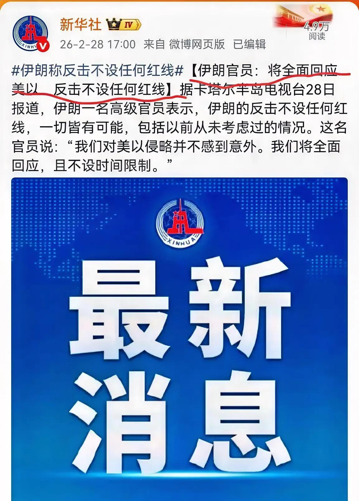 美以联合突袭伊朗,目标直指核心设施与领导层,中东瞬间拉响全面战争警报。 伊朗高层直接放话:反击不设任何红线、无时间限制,一切手段皆可用。 这样就对了 就像斗地主:手里握着导弹无人机,畏首畏尾留着过年? 伸头缩头都是一刀,不如把所有火力打光、把所有底牌打尽。 要么赢,要么站着输,绝不窝囊退场。 这不是小冲突,是不死不休的全面对抗。 中东火药桶彻底引爆,接下来只会更激烈。