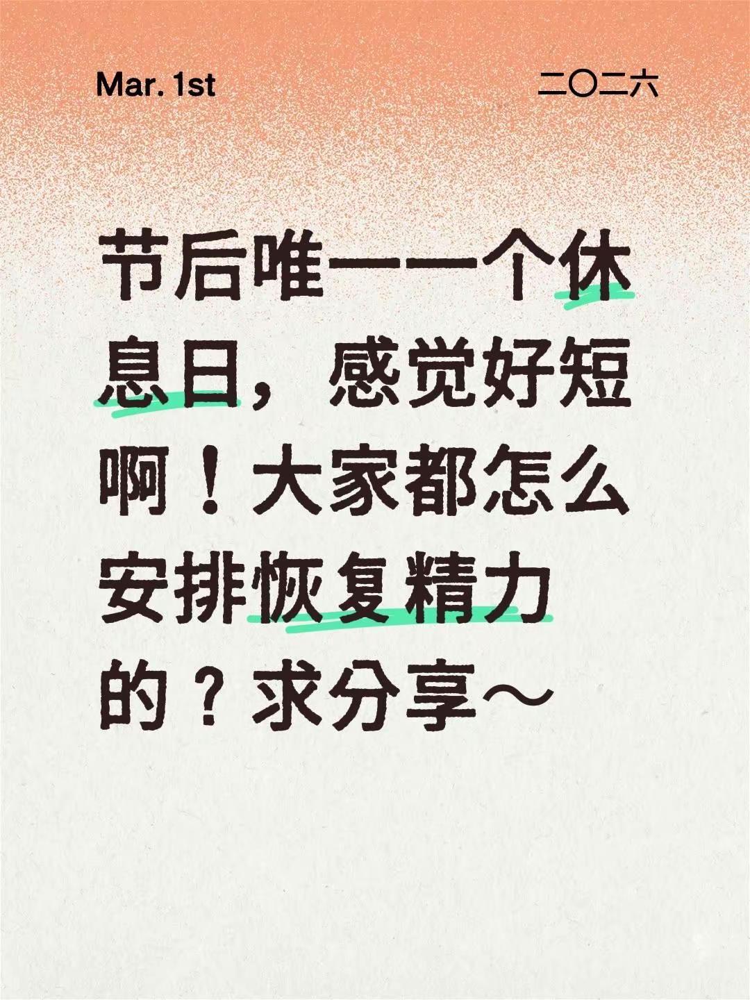 节后唯一一个休息日,感觉好短啊!大家都怎么安排恢复精力的?求分享~节后综合症