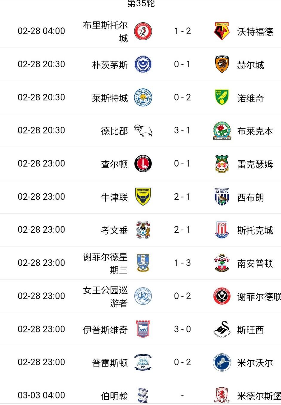 英冠太疯狂了!除了未比赛的,1-9名全都赢球,排名基本不变。考文垂依旧领先第三名9分。 谢菲尔德联、诺维奇成为中游球队取胜的两支队,可惜前面的球队太强势,他们还是没能缩小差距,进附加赛很难。 莱斯特城继续沉沦,主场0-2不敌诺维奇,牛津联2-1主场险胜西布朗,缩小了跟安全区的积分差距。