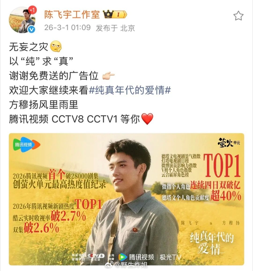陈飞宇工作室回应热搜 正好剧宣有作品就是有底气啊