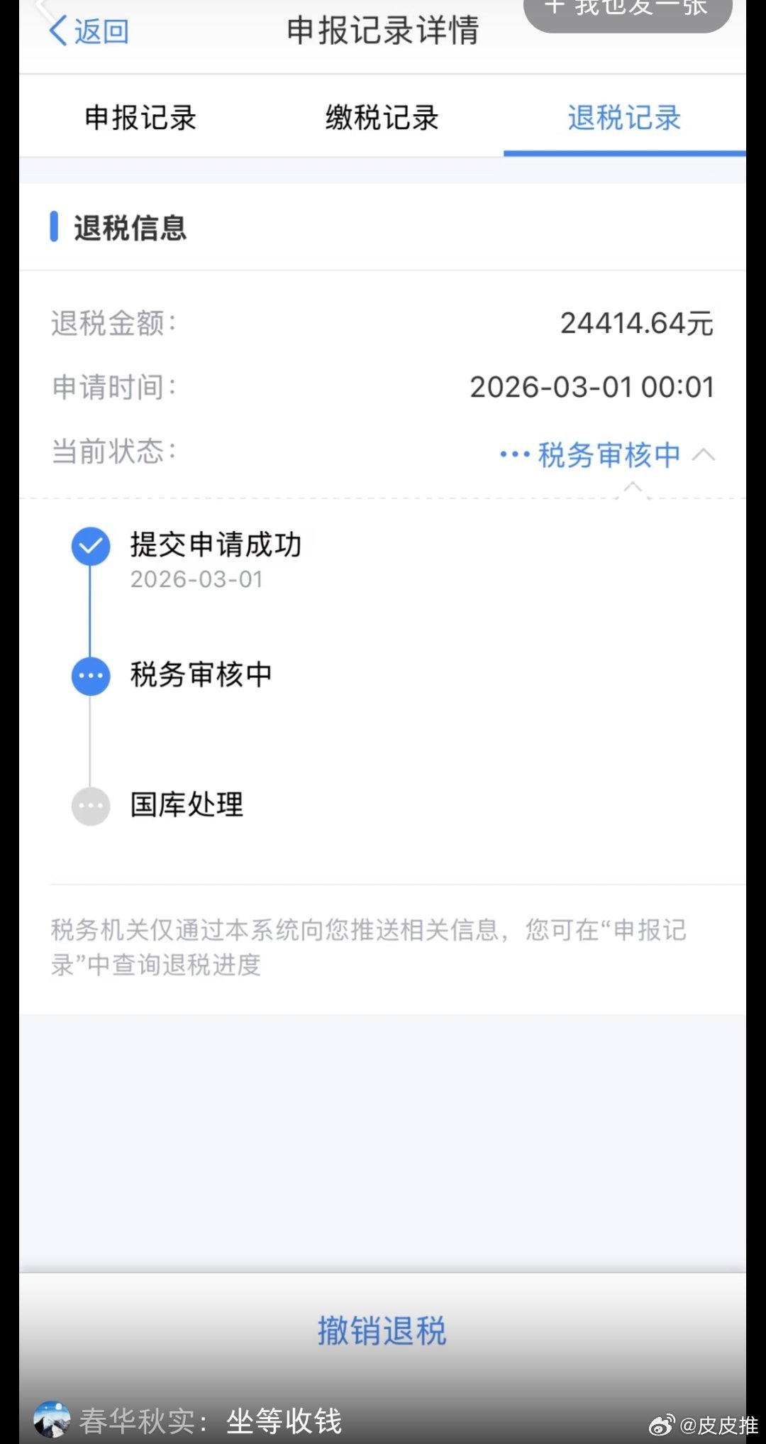 我看到大家晒的退税截图,有退几块钱,几百、几千还有几万的,有网友甚至表示提交进度已经到国库处理了,这退税速度可真快。