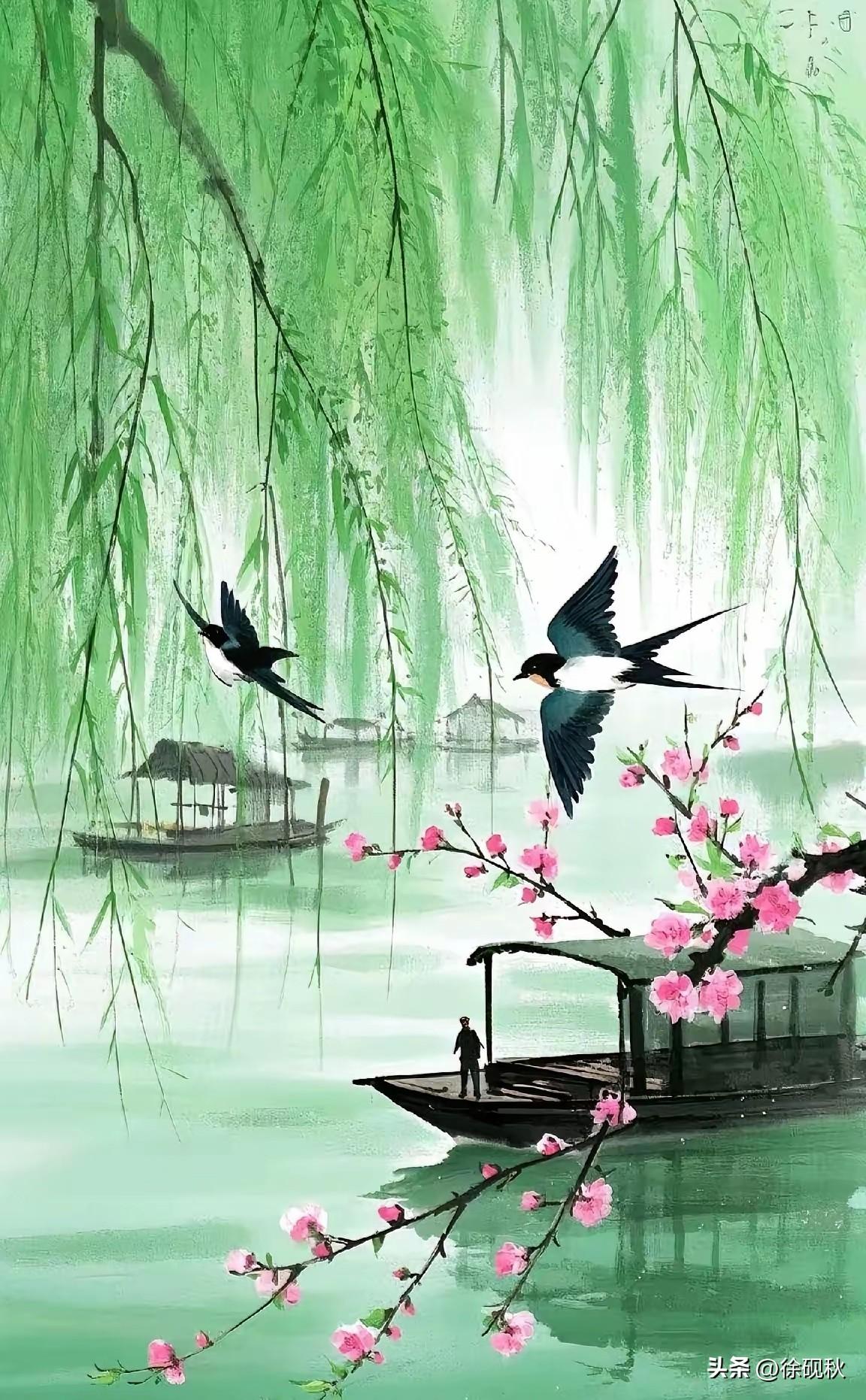 上联:桃花灼灼沐晨曦 下联:杨柳依依醉晚风