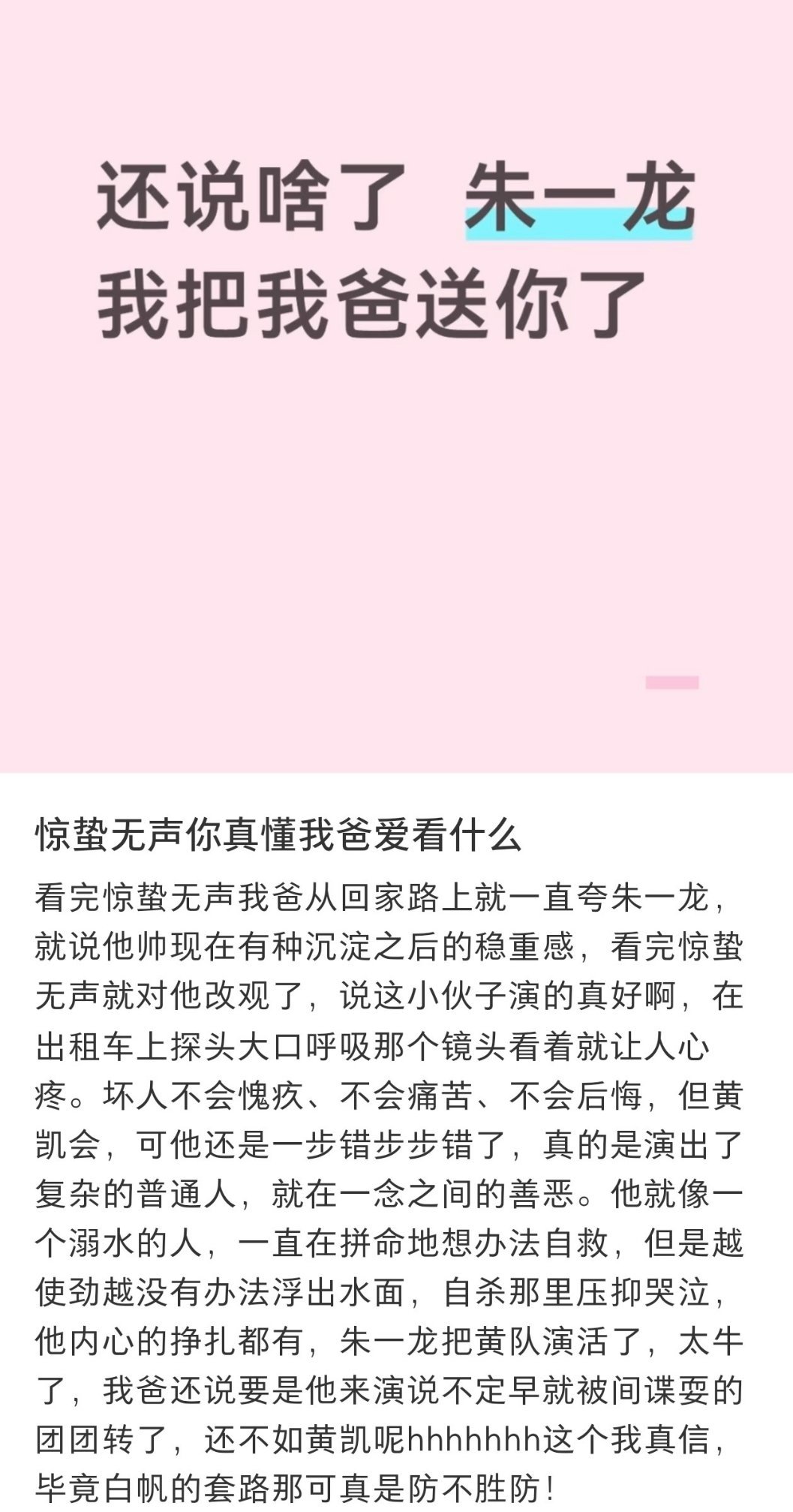 惊蛰无声到底谁说的是真的观众的真实反馈是真的,朱一龙就是喜欢朱一龙的表演