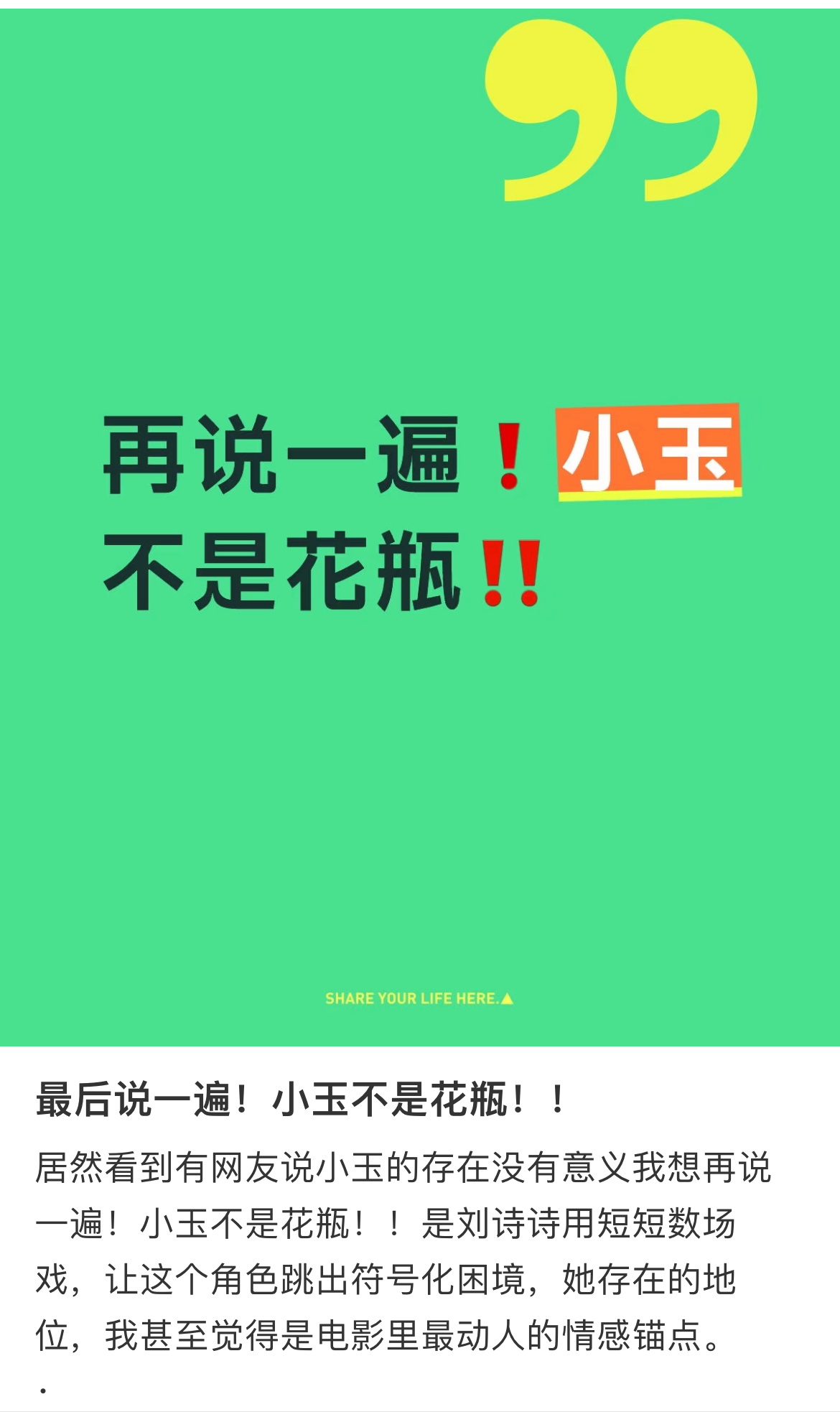《小玉不是花瓶!!!小玉的意义,远不止爱情悲剧。她是平凡人在时代洪流里的选择,是正义背后无声的支撑,更是女性独立与尊严的写照。刘诗诗让小玉活成有骨有魂的个体,而非装点剧情的美丽摆设。·《惊蛰无声》值得一看,不只因紧张博弈,更因小玉这样的角色照见人性微光。刘诗诗用演技打破了很多人偏见!最后再说一遍她真的不是花瓶!!!惊蛰无声刘诗诗惊蛰无声