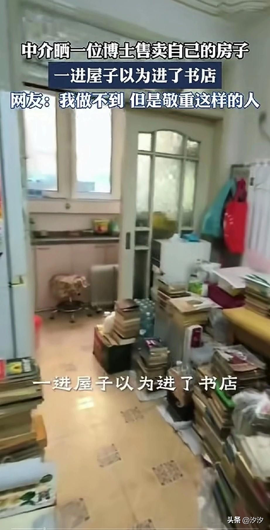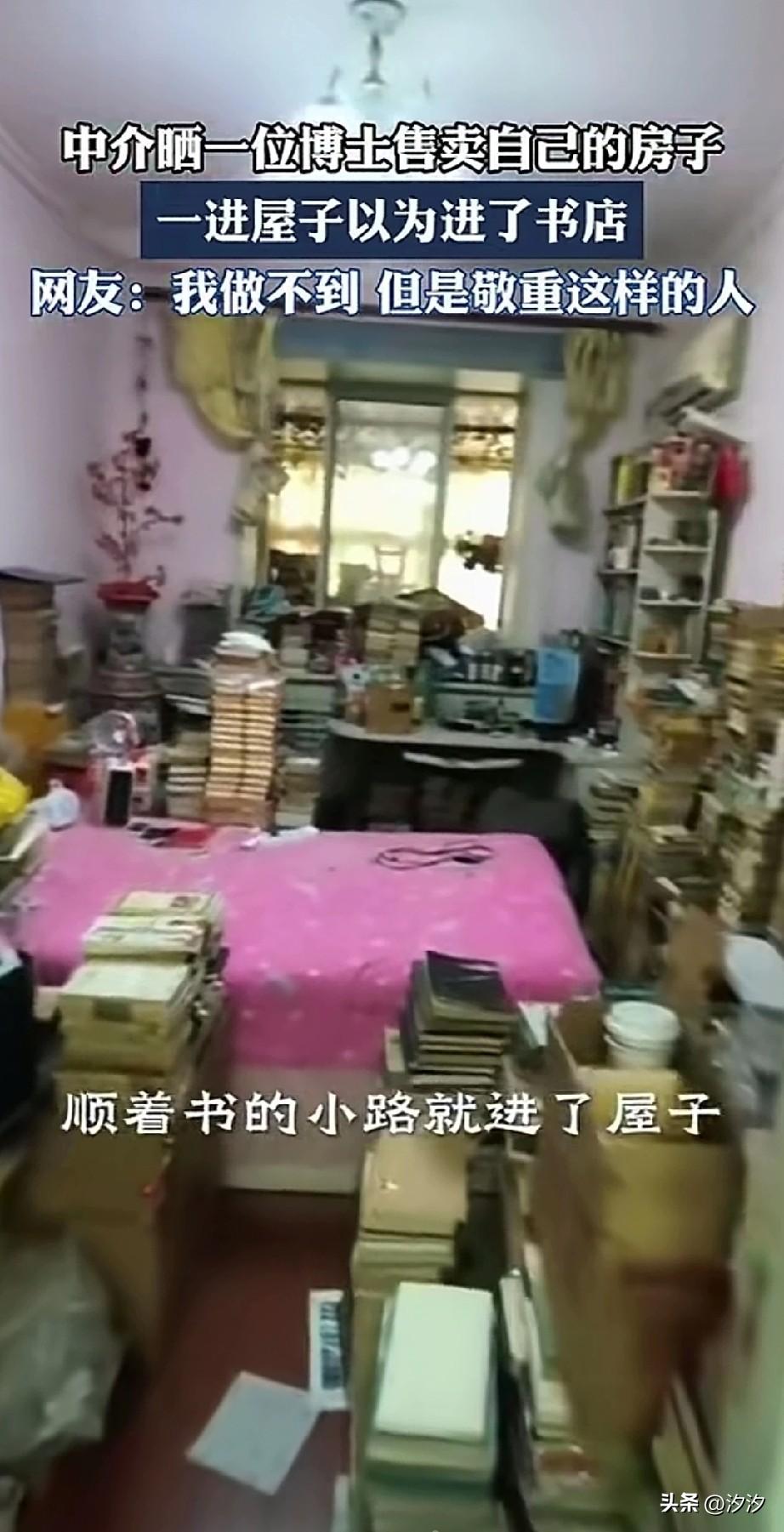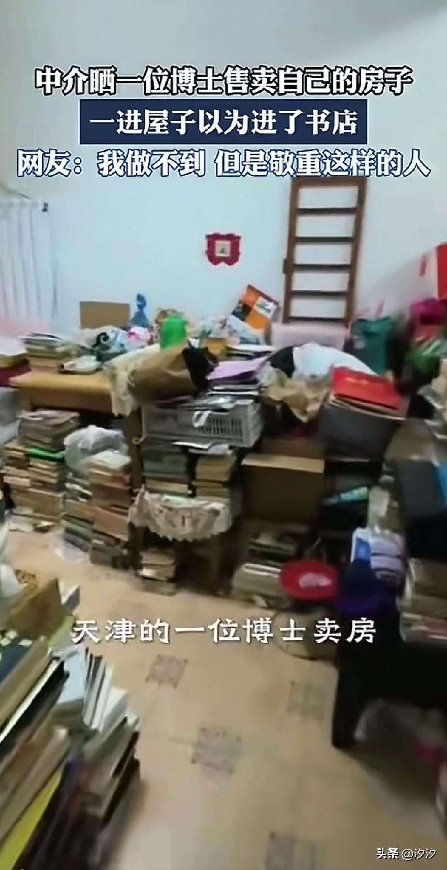 天津一个卖房中介, 来到了一个博士的家中, 本来想拍个卖方视频, 结果被眼前的一幕震惊了, 这位天津博士的家中堆满了书籍, 除了自己房间的床上没有书, 不管是客厅,侧卧,阳台全都是书, 关键这些书还整整齐齐的, 他自己都表示佩服, 自己当时没有好好读书, 看到这样的博士,非常的尊敬, 直言这位房主真的是太有文化, 这样的房子他也是第一次见, 于是用视频记录这惊人一幕, 这事直接在当地炸开了锅, 有网友表示自己家也有博士, 都是买的书架子装的书, 还有网友表示他就是太懒了! 大家觉得这位博士为什么家中到处都是书呢? 天津 卖房 看房中介 房产人卖房 网红房产中介 卖房专家