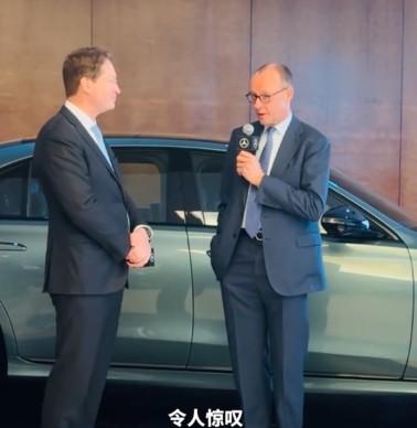德国总理默茨在试乘一辆奔驰S级轿车之后,当着记者的面说了三个英文单词:This