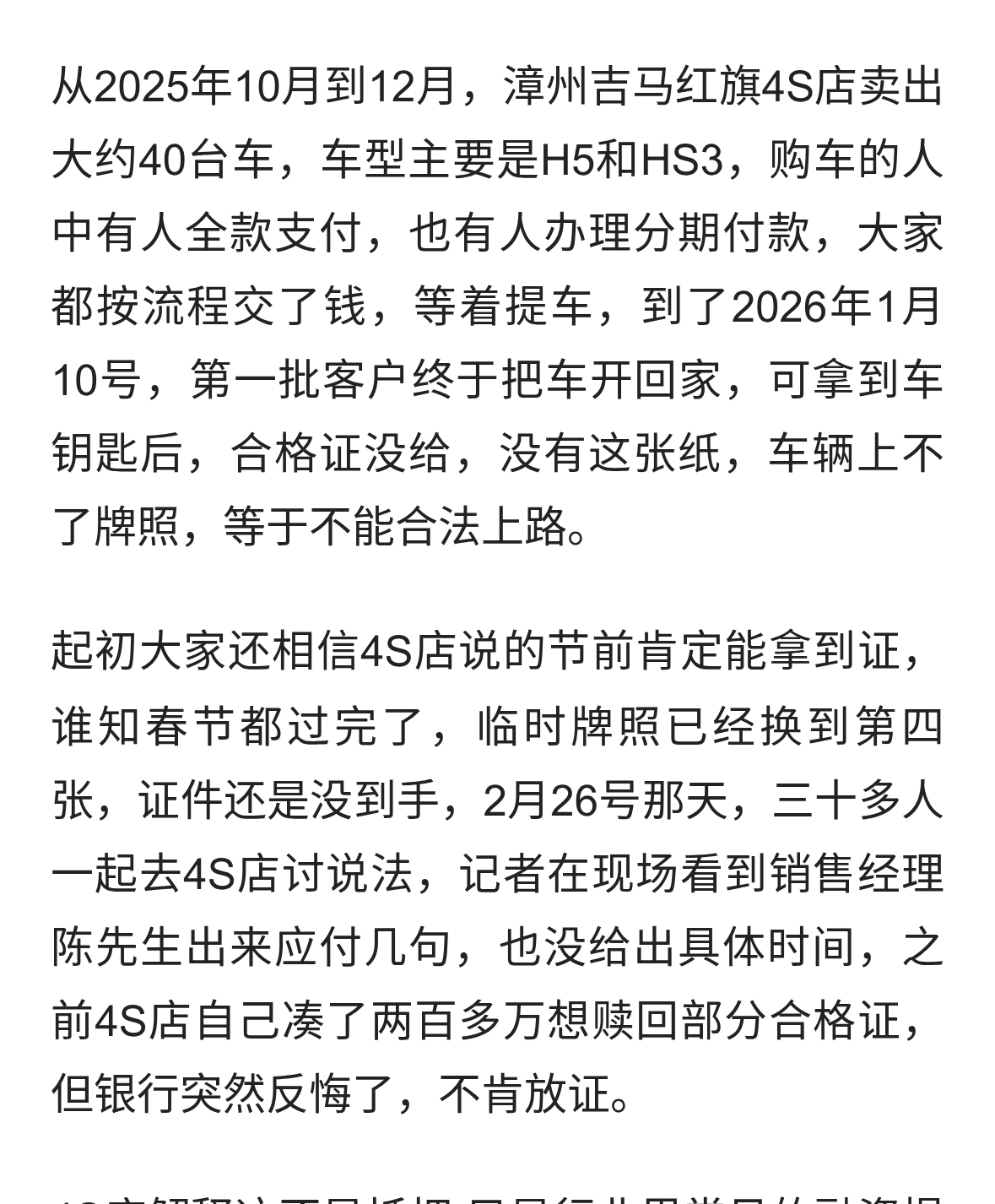 提车容易上牌难,40位红旗车主被合格证卡住 银行和4S店谁在拖后腿