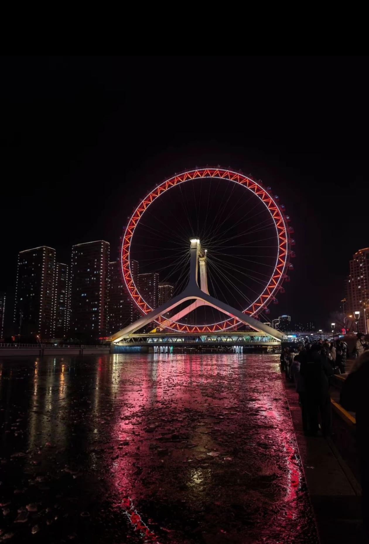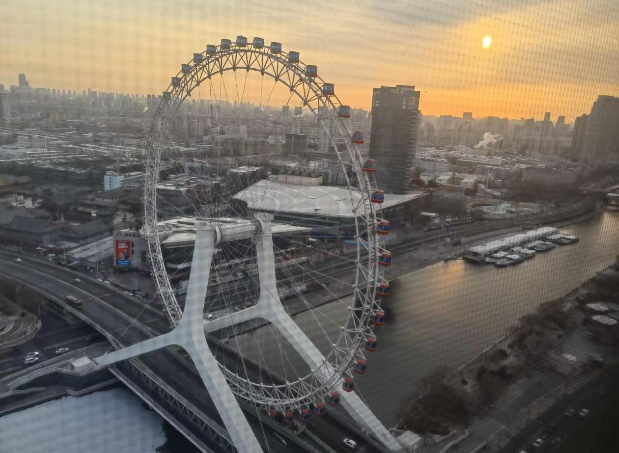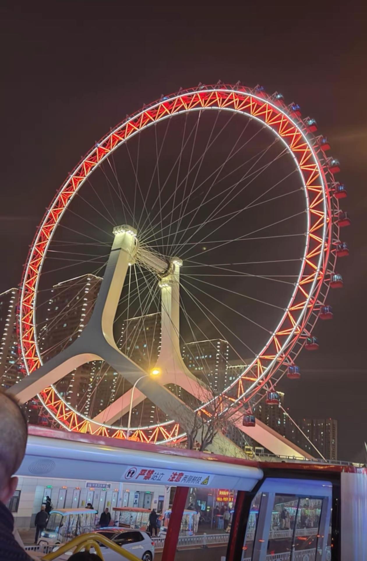 在白天,阳光洒在摩天轮上,金属的光泽闪耀夺目,从远处眺望,它就像一个巨大的银色光环,散发着独特的魅力。 而到了夜晚,天津之眼更是璀璨夺目,五彩斑斓的灯光亮起,与海河两岸的灯光交相辉映,将整个城市装点得如梦如幻。 坐在摩天轮的轿厢里缓缓上升,城市的夜景尽收眼底,那种浪漫又震撼的感觉,真的让人陶醉。摩天轮美景图 天津之眼旅行