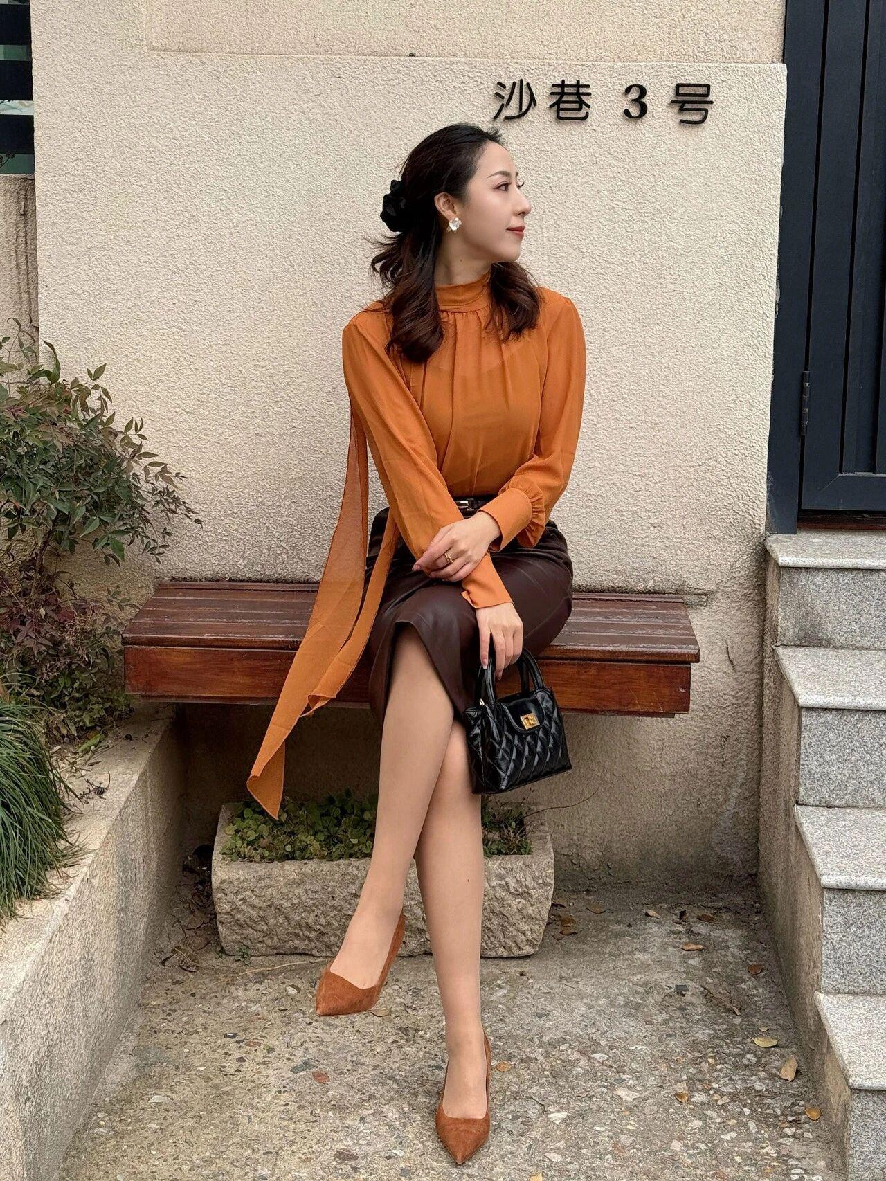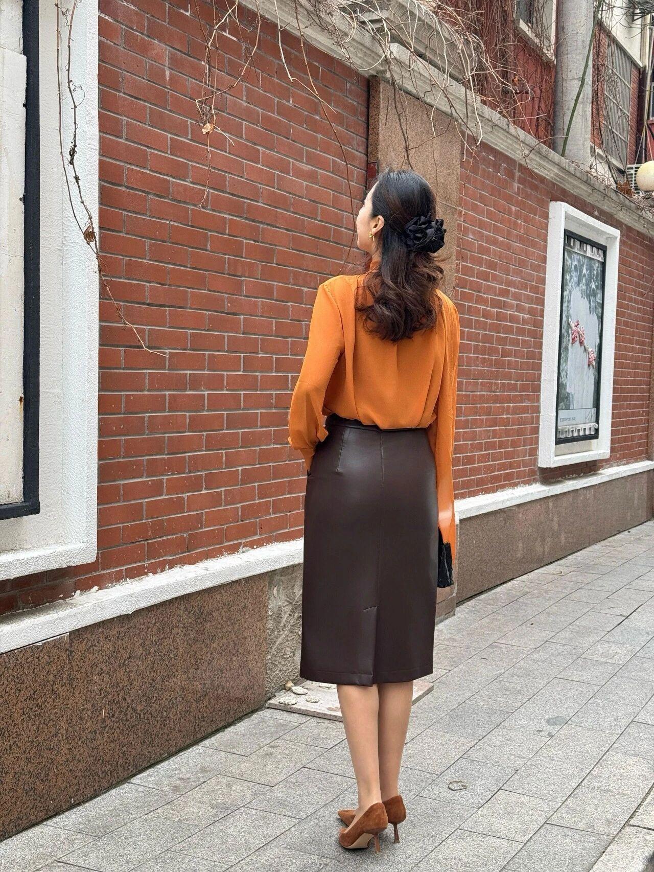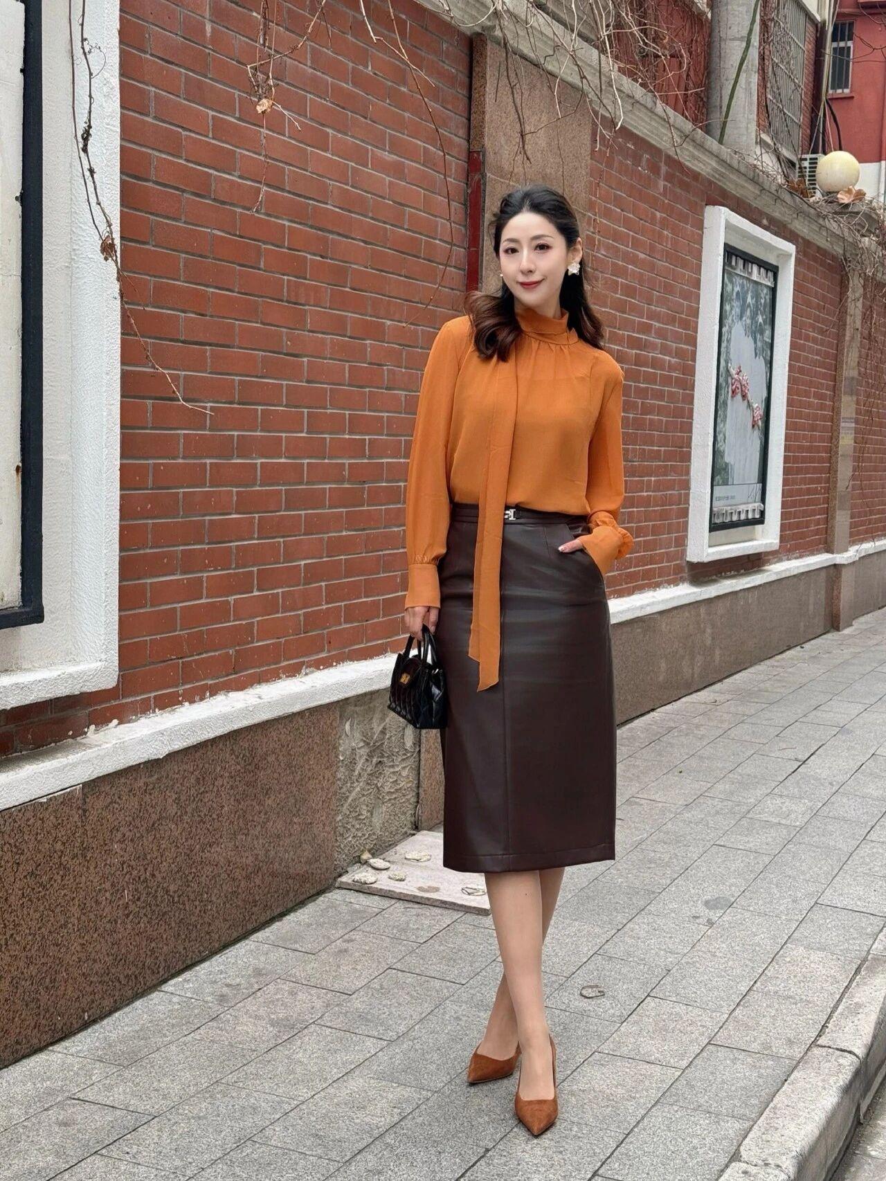 什么样的穿搭可以成为气质女神?这位姐姐气质太出众了,温婉又大气,完全是优雅知性的典范✨ 妆容精致得体,发型温婉大方,黑色发间点缀着精致发饰,尽显端庄韵味 身着焦糖色飘带雪纺衫,搭配深棕皮质半身裙,同色系配色高级感拉满,柔滑与挺括质感碰撞,温柔中带着干练气场 身姿挺拔优雅,举止从容娴静,眉眼间满是温婉气质,成熟女性的从容韵味与精致美感尽显无遗