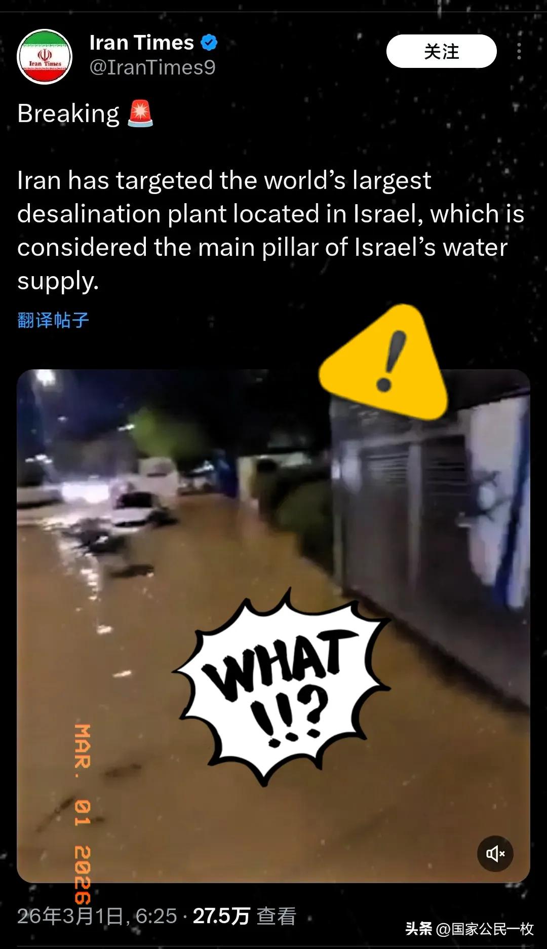 局势突变 🚨 伊朗打击目标曝光,以色列水安全面临空前挑战,世界最大海水淡化厂成关键一击点。