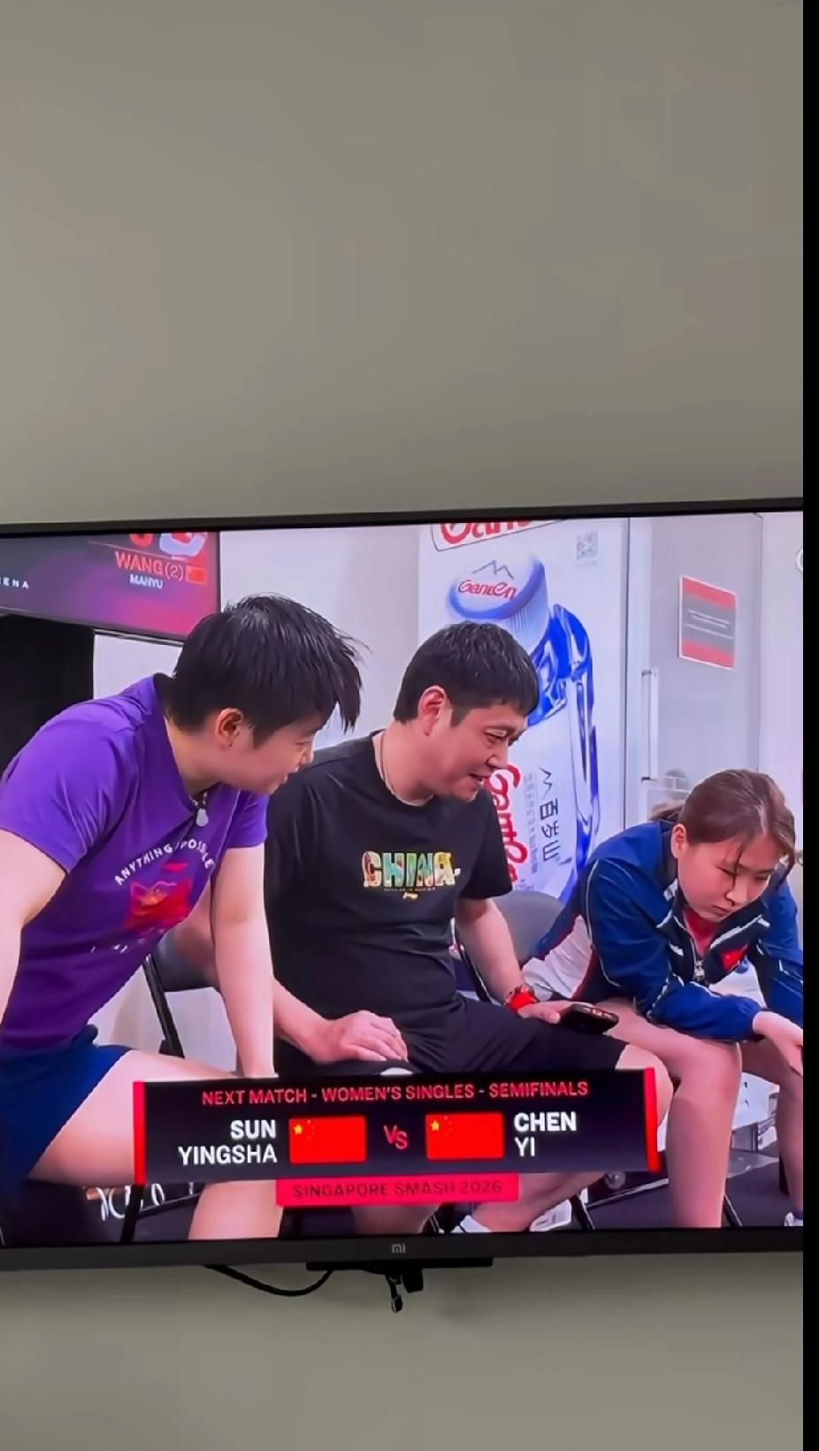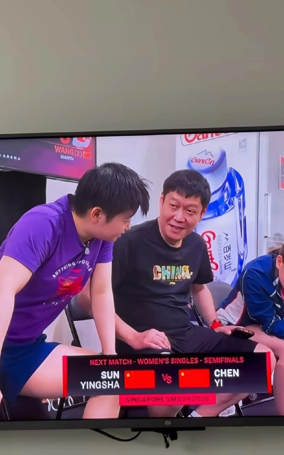 莎莎和邱指导候场看曼昱比赛,这师徒同框也太有爱了吧!✨ WTT新加坡大满贯女单半决赛间隙,孙颖莎和邱贻可指导在候场时,正凑在一起认真看着王曼昱对阵德国选手的比赛回放。 莎莎穿着标志性的紫色训练服,身体微微前倾,眼神专注又带着笑意;邱指导坐在旁边,侧耳倾听,嘴角也忍不住上扬,像是在和莎莎小声分析着场上的战术。 这一幕就像自家孩子和老爸一起看球一样,既有师徒间的专业探讨,又满是家人般的轻松默契。等下莎莎就要和陈熠打响内战,相信她也从曼昱的比赛里汲取了能量,期待她打出自己的节奏! 孙颖莎 邱指导 新加坡大满贯