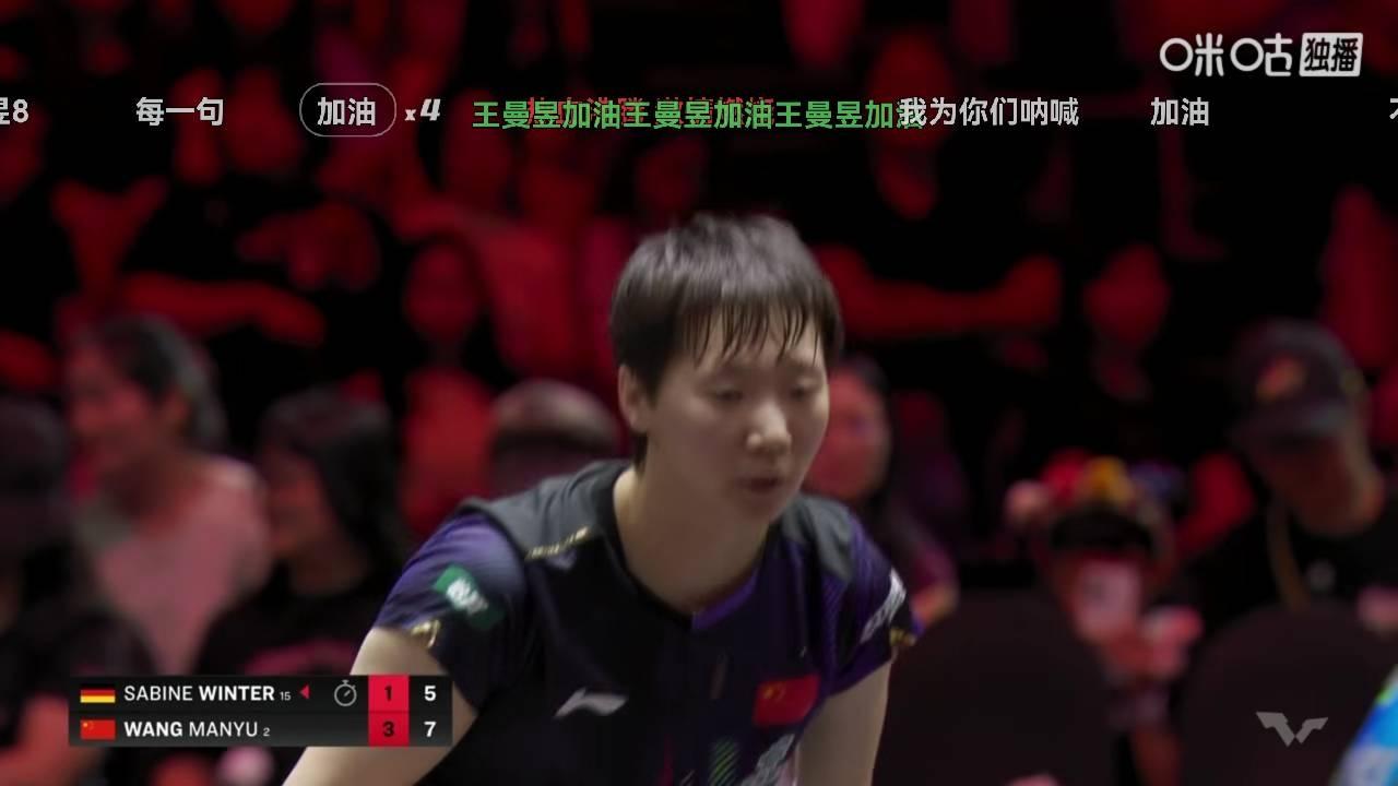 恭喜王曼昱闯进决赛,黑马温特到此戛然而止 新加坡大满贯进行到女单半决赛,欧洲选手只有温特一路闯关,冲进前四(其他三人为王曼昱、孙颖莎、陈熠),黑马颜色很足! 但本场遇到王曼昱,她的博杀就失去了威力,在深厚的功底面前,一切都是苍白!王曼昱4:1比较轻松地拿下温特,直闯决赛。 尤其是第四局,遇到了最惊险的局面,王曼昱1:8落后。这种局面一般情况下都是没救了。但王曼昱凭着自己坚厚的功底,加上马指导英明的指挥,场上王曼昱良好的发挥,一分一分直打到11:9击败温特,让黑马恢复了她本来的颜色。在此,恭喜曼昱,祝贺国乒!