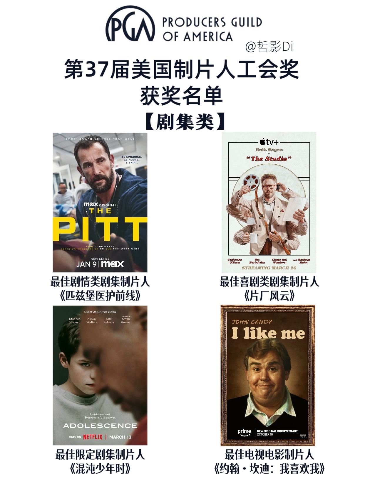 第37届美国制片人工会奖获奖名单公布,保罗·托马斯·安德森执导的新片《一战再战》获得最佳剧情电影制片人奖,横扫金球奖、评论家选择奖、英国电影学院奖及制片人工会奖最佳影片,奥斯卡最佳影片十拿九稳。网飞热门动画电影《K-POP:猎魔女团》则获得最佳动画电影制片人奖,完成金球奖、评论家选择奖、安妮奖及工会奖横扫;剧集方面,《匹兹堡医护前线》《片厂风云》《混沌少年时》依旧保持大热势头,拿下大奖。