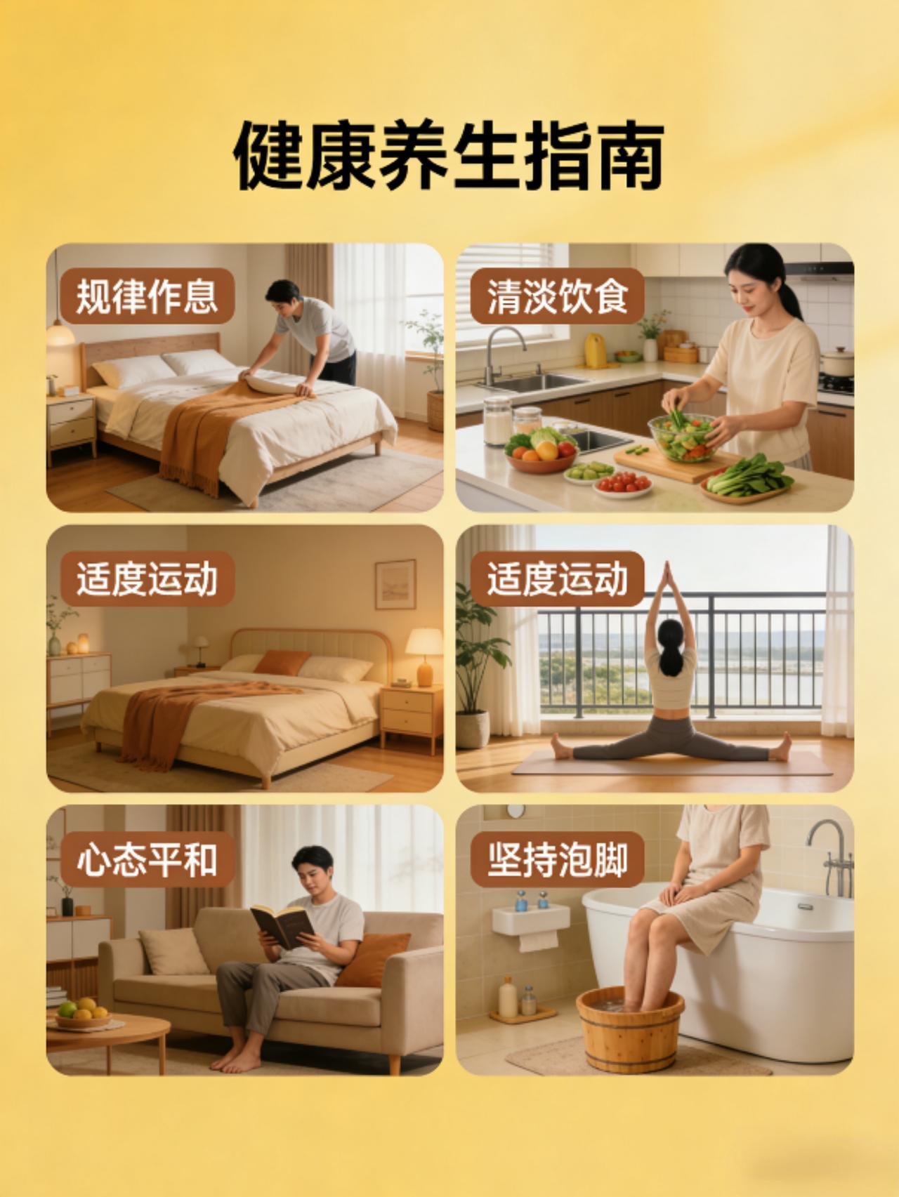 每天养生最好的方法是什么规律作息、清淡饮食、适度运动、心态平和、坚持泡脚。