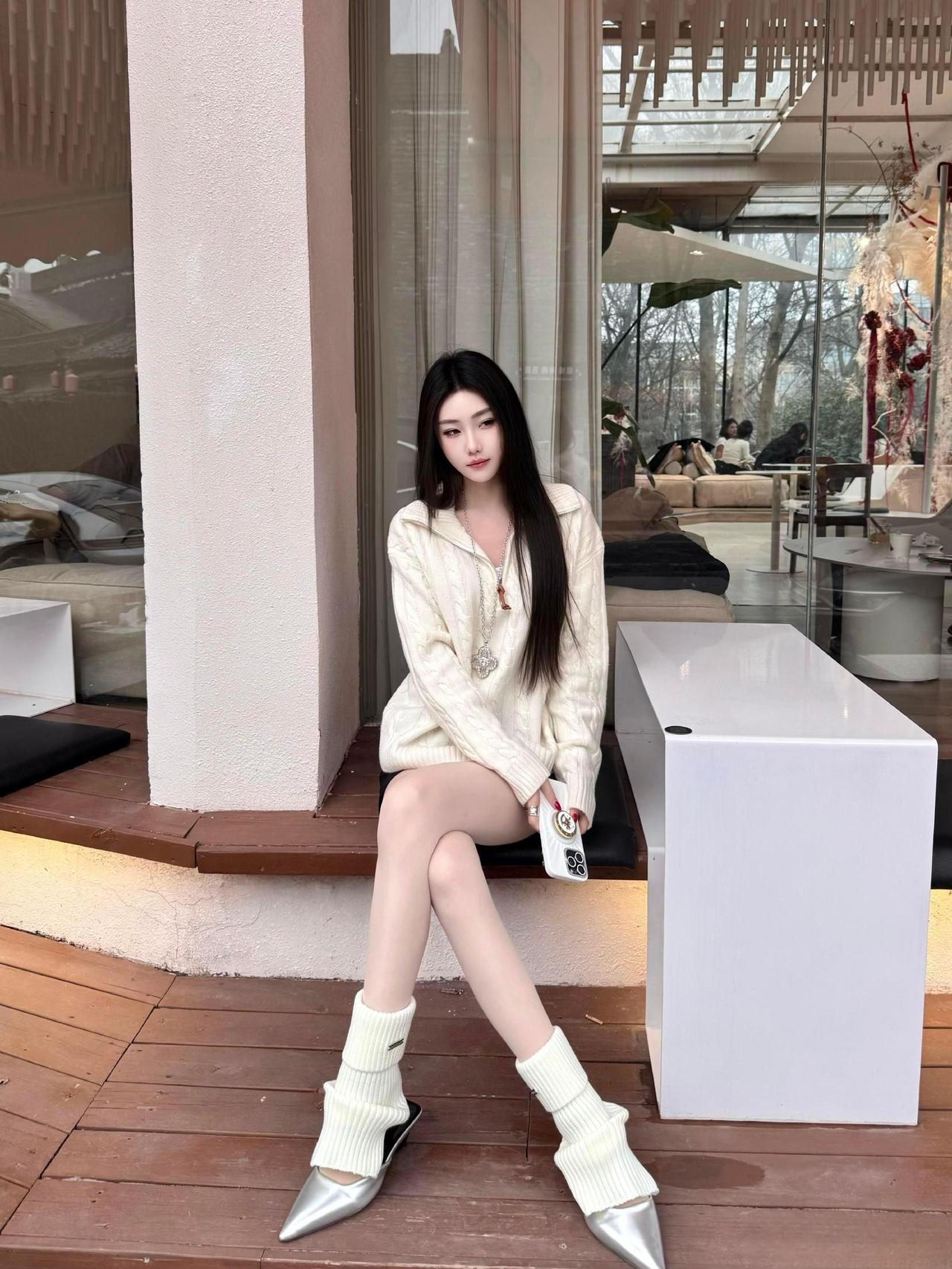 这套穿搭是“温柔纯欲风”的绝佳范本!米白麻花毛衣自带软糯松弛感,短款内搭露出线条增加纯欲氛围,针织袜靴和银尖鞋的组合又把精致感拉满,整体色调统一又有细节。米白针织穿搭