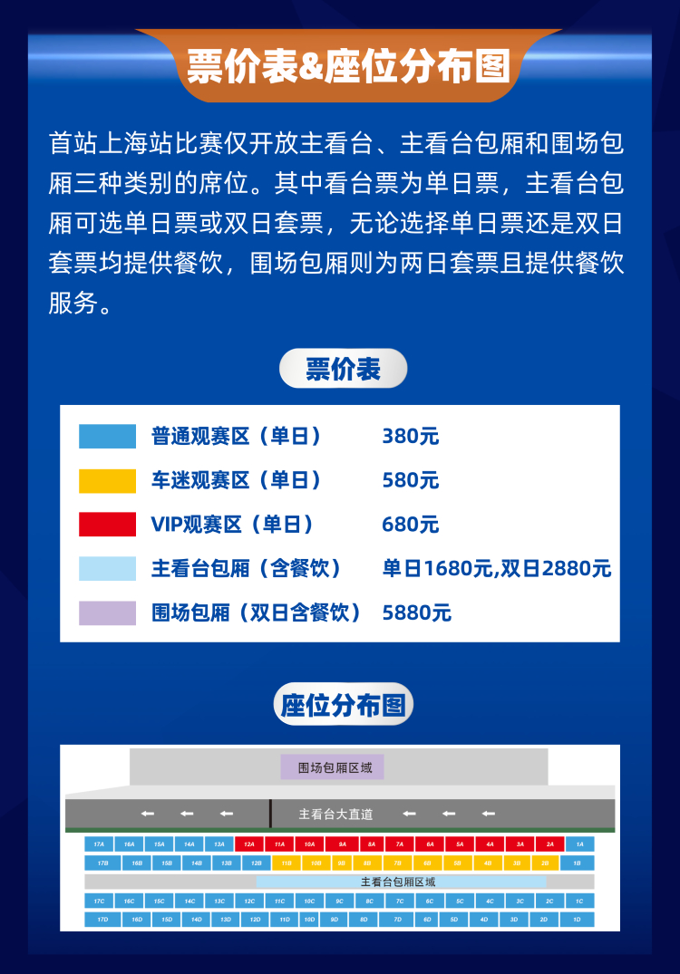 🕐开售时间:3月2日10:00🟩售票app:久事体育app/久事体育WX小程序🏎️比赛时间:4月18日-4月19日