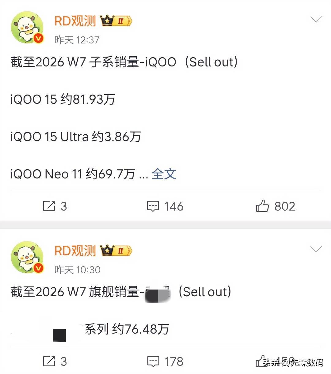 笑死我了,某家手机厂商4款旗舰机干不过友商子系旗舰一款,1打4打不过还不让说。 不说华为Mate80系列和小米17系列,vivoX300系列干到165W,OPPO Find X9干到135万。但这个厂家四款旗舰机加一起才79.55万,对比上周的76.48万一个周就暴涨3.07万台。 再看看隔壁子系iQOO15,人家一款手机上周就82万了。