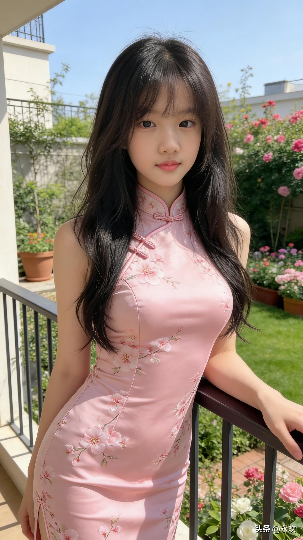 优雅的旗袍少女,倚栏远眺,古典与现代的完美融合。