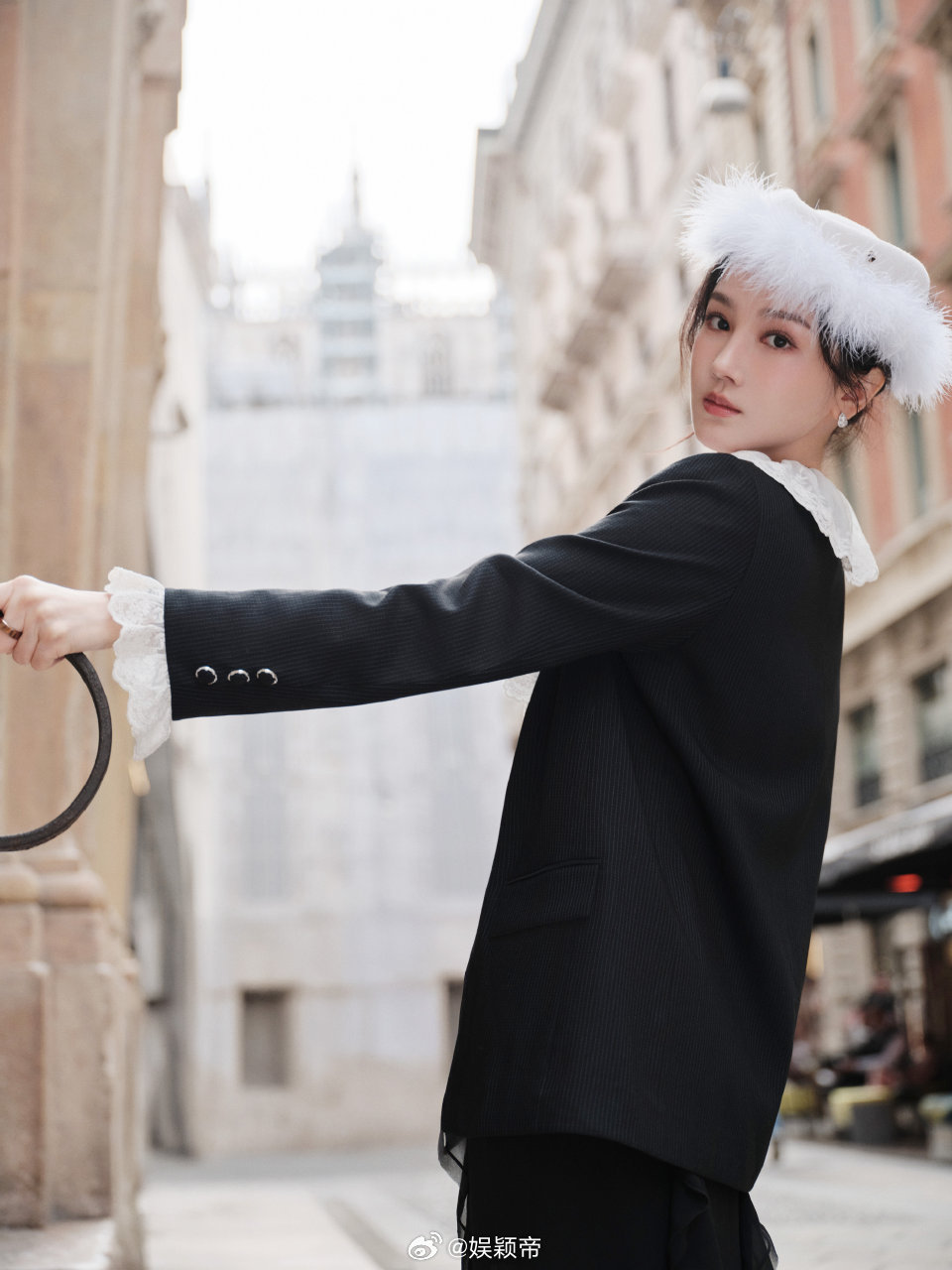 陈小纭米兰时装周首秀 看多了用力过猛的造型,这身反而让人眼前一亮。蕾丝和简约剪裁