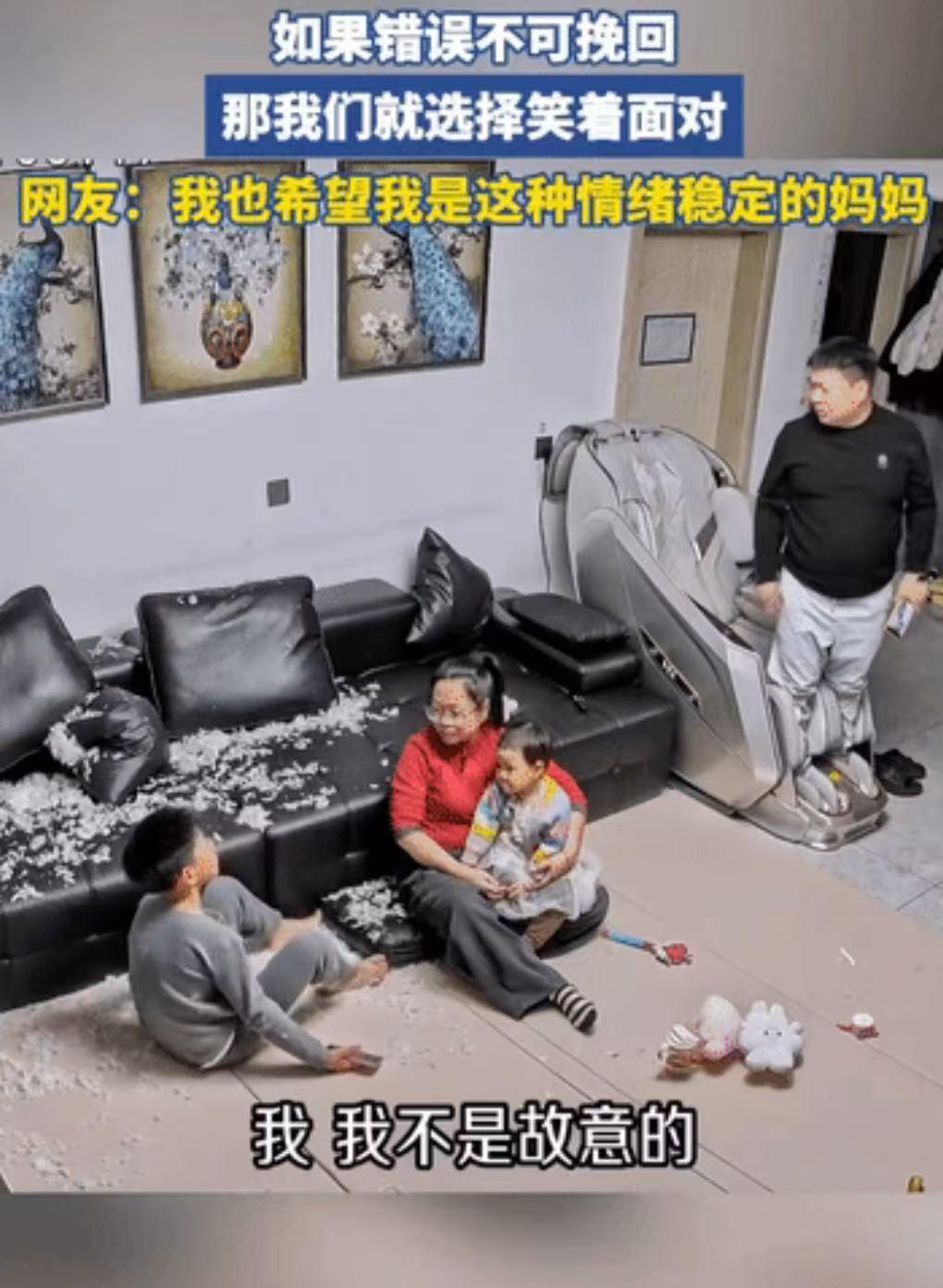 一儿子在房间打游戏,突然激动的大喊:“老爸,出龙了我出龙了!”然后他跳到大厅沙发上,结果力气太大把沙发抱枕给踩破了,本以为他的父母会大声指责或者骂他,没想到他的父母却笑着面对。网友:我也希望我是这种情绪稳定的妈妈。 信息来源:个人网友分享 儿子在房间打游戏,突然激动的从房间里跑出来,大喊:“老爸,出龙了我出龙了!” 然后跳到沙发上,结果力气太大把沙发抱枕给踩破了,他人也一个不稳摔在了地板上,抱枕里的羽毛飘得沙发上和地板上都是的。 大家都以为,家里最怕的就是孩子一兴奋把东西弄坏。 但有一次,14 岁的小浩玩手游,猛地冲出来:“老爸,出龙了!我出龙了!” 只见他一个鲤鱼打挺跳上那张灰色布艺沙发,“咔嚓”一声抱枕震裂,羽毛啪啪炸成一地棉花糖,地砖、沙发缝里全是白絮。 原本那会儿,任何人心里都嘀咕:孩子又要挨骂了。 毕竟小浩从早七点到校,晚上九点补完习回家,平时周末就挤出周日晚一小时玩游戏,学习压力山大。 更糟的是,破了几十块的抱枕,又要被念叨不懂事、乱蹦乱跳。 偏偏这对父母却大反转。 老妈正擦完厨房的木质餐桌,抹布都还挂着几滴洗碗水,她笑眯眯地蹲下身:“哎呦,我的小龙骑士,快给妈说说,这只龙哪里牛?” 老爸刚脱下网约车制服,挂在椅背上,端着还冒着热气的花茶走过来:“对啊,这条龙能帮你过几层副本?厉害到飞起来?”一句接一句,把屋里的紧张一扫而空。 小浩收拾心情,拿起簸箕和扫把,麻利地把地上的羽毛往簸箕里扫;老妈从抽屉里掏出那个只有拇指大的迷你针线包,一边缝补抱枕一边逗他说:“别担心,把这些羽毛当成胜利的小烟花就行。” 老爸在旁边递线头,还赞一句:“好家伙,这学业重,能有一次小确幸,说不定比什么都值钱。” 事情收尾后,抱枕补得平整如初。 小浩心里乐开花,从此不拖游戏时间,学习上也主动安排,不用爸妈催;遇到烦心事,第一时间找父母聊。 这个家用“先接住孩子情绪,再谈后续” 的方式,把一次小意外变成更大的信任和成长。 父母的情绪稳定就是孩子最温暖的后盾,说实话,很讨厌那种情绪化严重的父母,自己心情不好就拿孩子发泄,那种父母真的很失败。