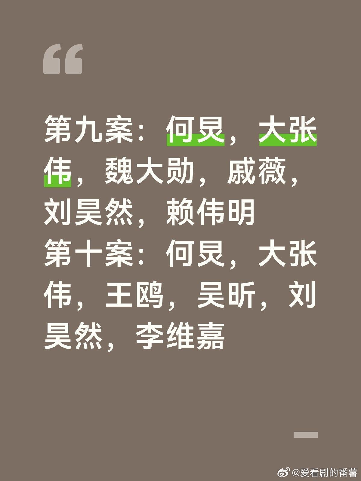 哦,内娱梗王李维嘉来了!第九案:何炅,大张伟,魏大勋,戚薇,刘昊然,赖伟明第十案:何炅,大张伟,王鸥,吴昕,刘昊然,李维嘉