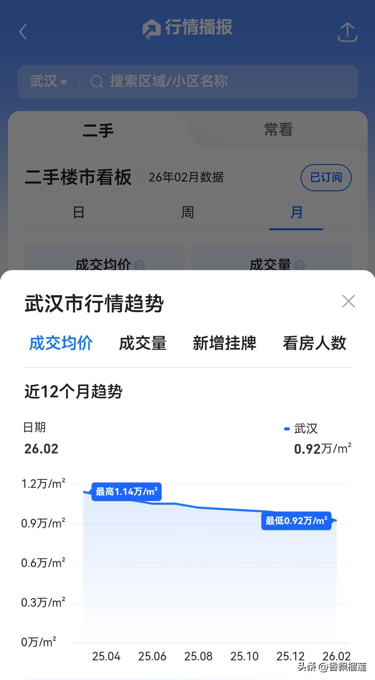 武汉:(以下内容来自贝壳APP,绝无半点虚假宣传) 2025年一月成交均价12200元/平方 2025年二月成交均价11200元/平方 过年期间跌幅8.2% 2025年十二月成交均价9700元/平方 年跌幅20.55% 2026年一月成交均价9800元/平方 2026年二月成交均价8663元/平方 过年期间跌幅12.6% (特别提示一下,这个月的成交均价某壳显示9200元/平方,跌幅6.2%,和本人记录的相差537元,这个很有意思,为了不出错,又重新按照每天的记录算了一遍,我的8663准确无误。) 只做记录,不做判断。有兴趣的网友可以自己算算,不是很麻烦,二月就28天,有成交记录的24天,用总成交金额÷24天即可,过去一年的计算都相差无几,这次差距太大了……