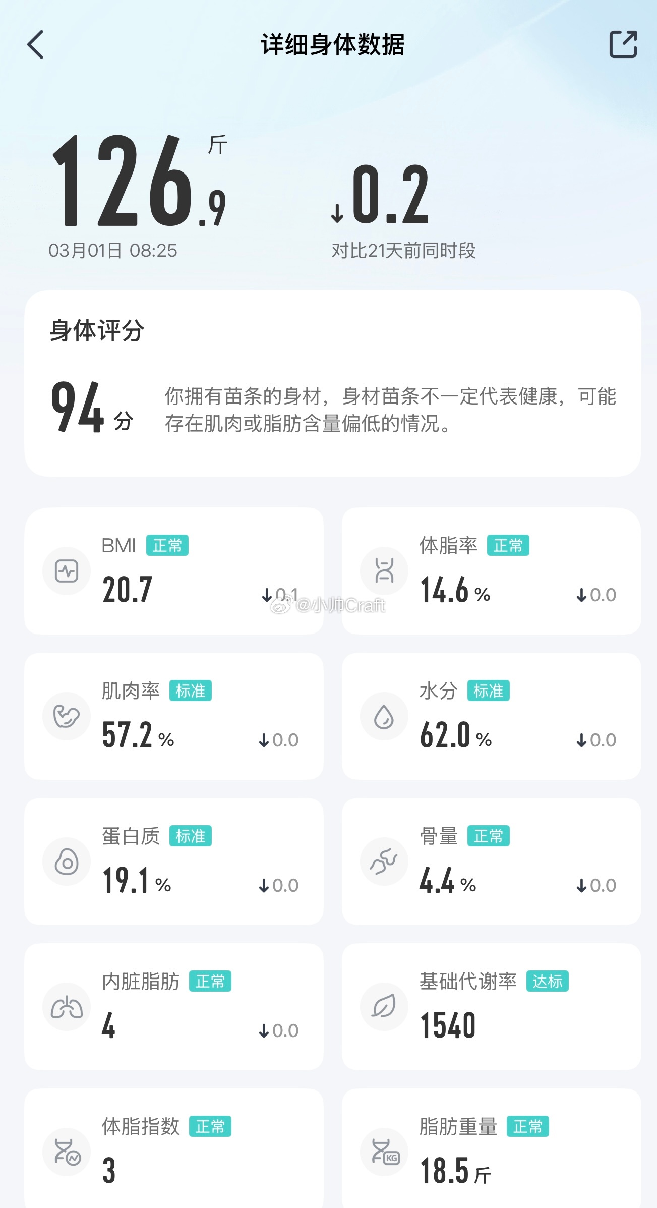 节后报道!吃了一个春节假期,体重反而轻了,说明增肌确实挺难的!小帅Craft