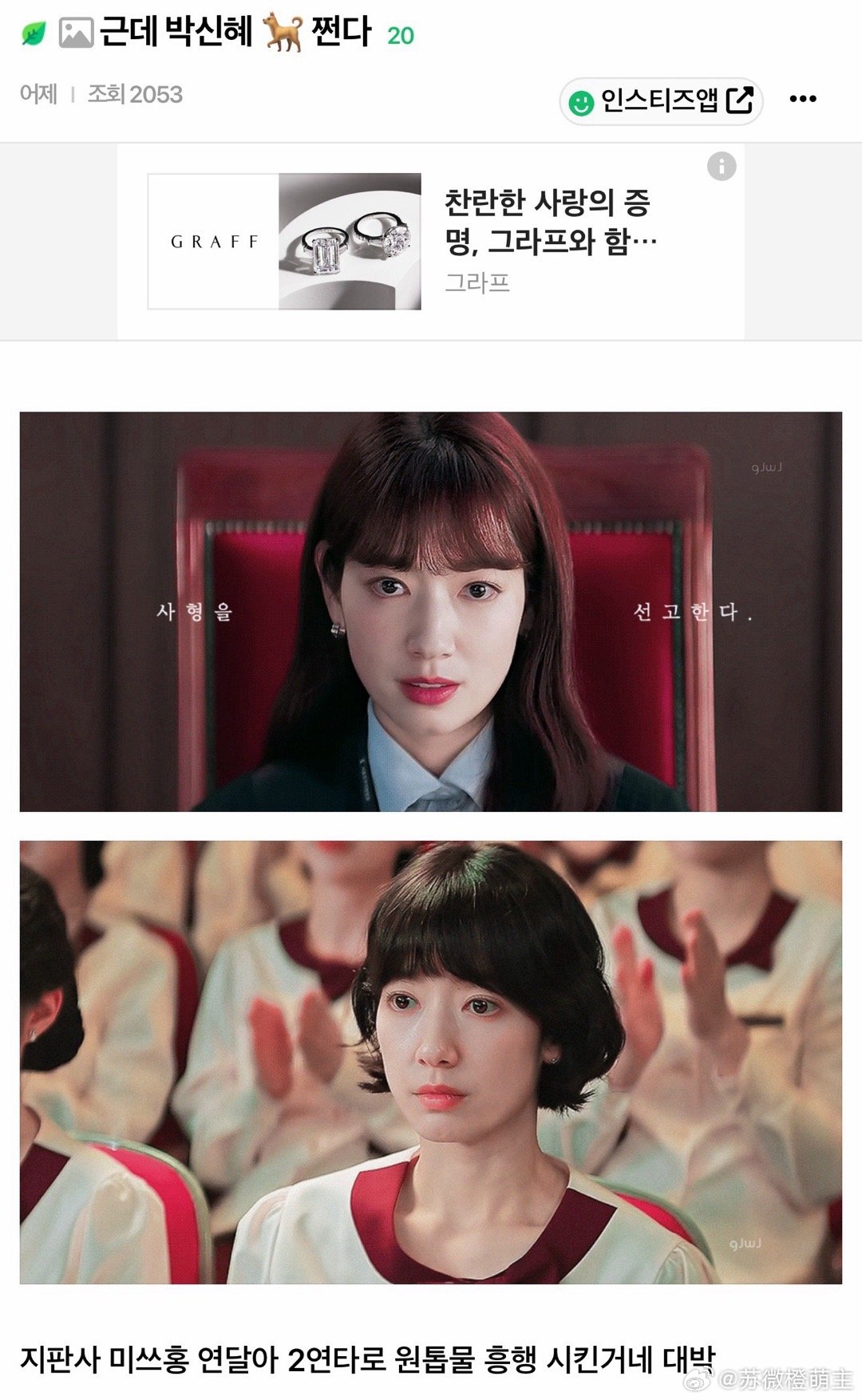 【instiz热帖】朴信惠真的很厉害!!!《恶魔法官》和《卧底洪小姐》连续两部单扛作品都大获成功,太厉害了。评论:为女演员的单主演作品喝彩,太棒了 尤其是已婚女演员们ㅠㅠㅠ作品选得很好,演技也很棒,从某种角度看也是理所当然的,但是非常了不起,心情很好。朴信惠真的很会选作品,都很有意思。很会选作品 真是眼光疯了甚至都不敢相信是孩子的妈妈,管理得也很好。真的很适合类型片