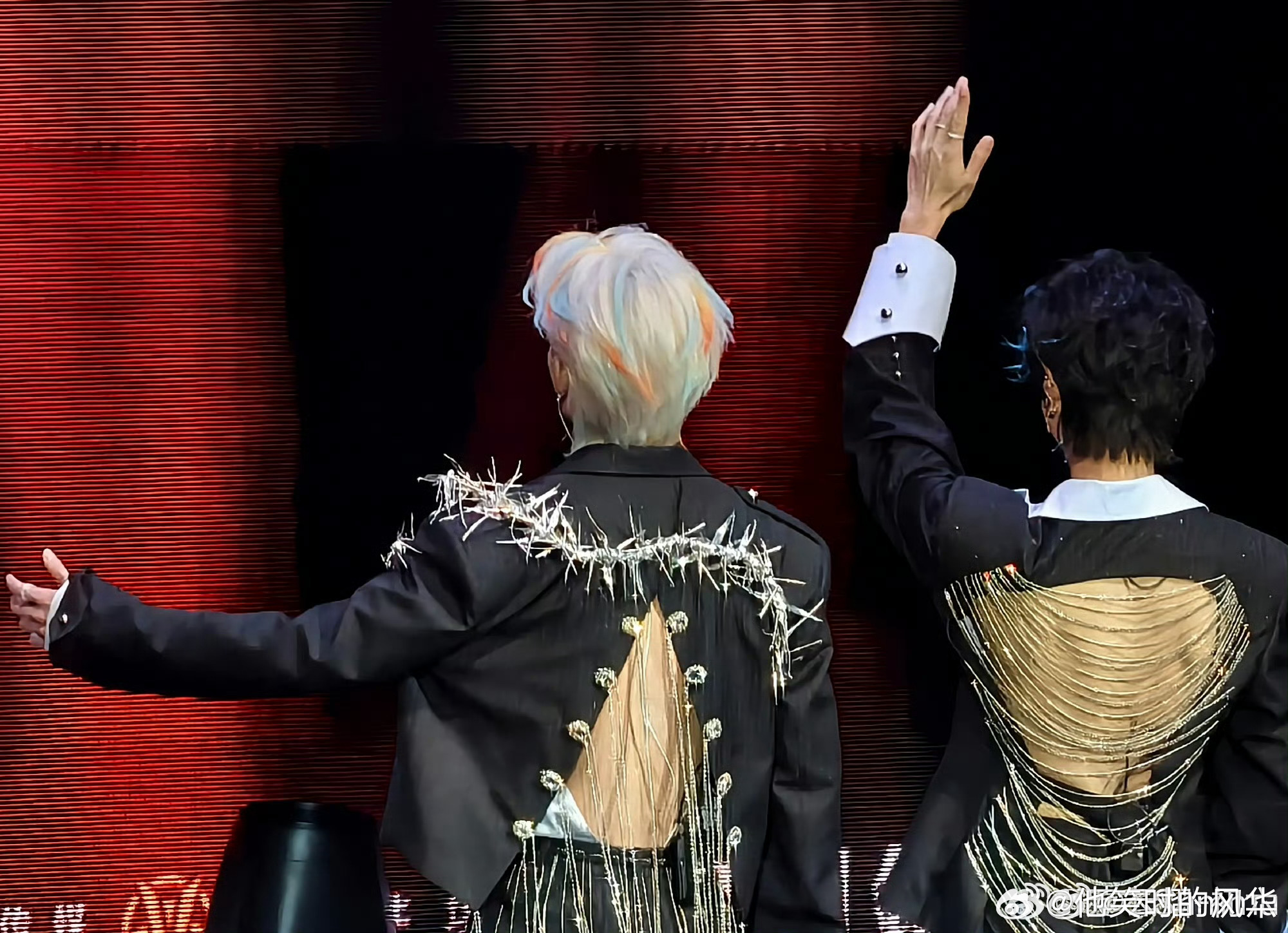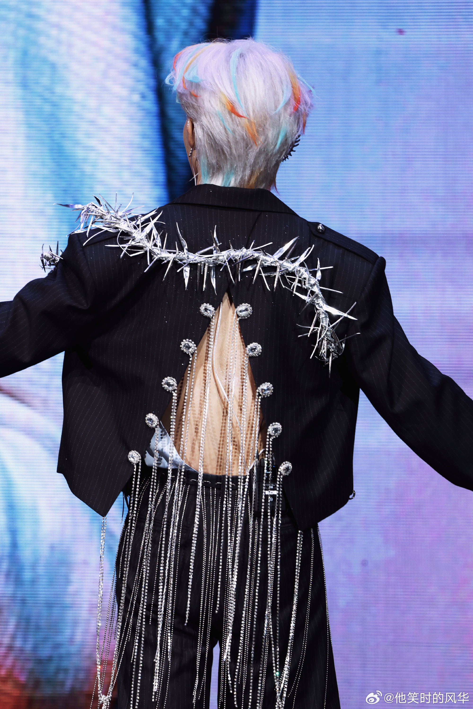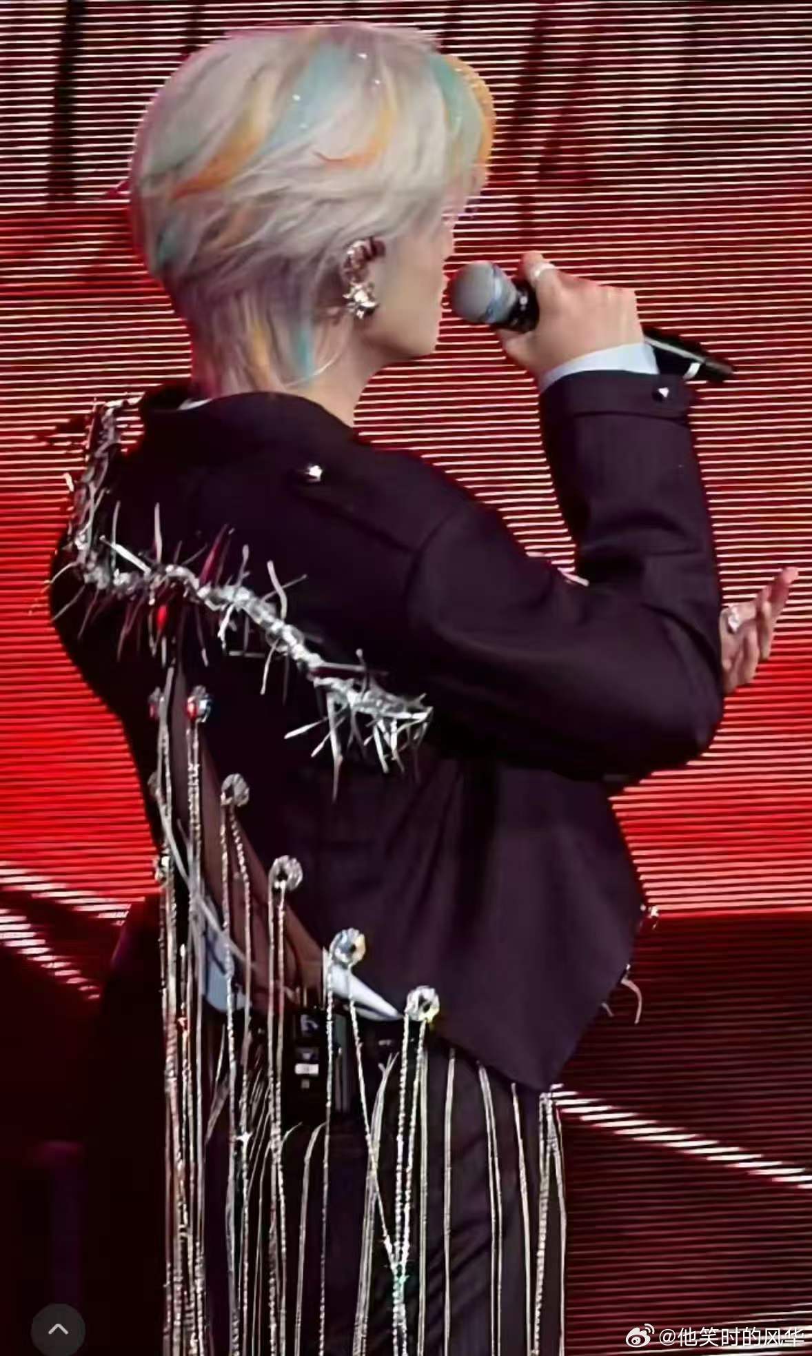 云旗倒V开背荆棘西装 云旗这套太绝了!倒V开背设计恰到好处露线条,荆棘元素+流苏细节拉满,又酷又性感,灯光下闪得耀眼,出场即锁定所有目光😱