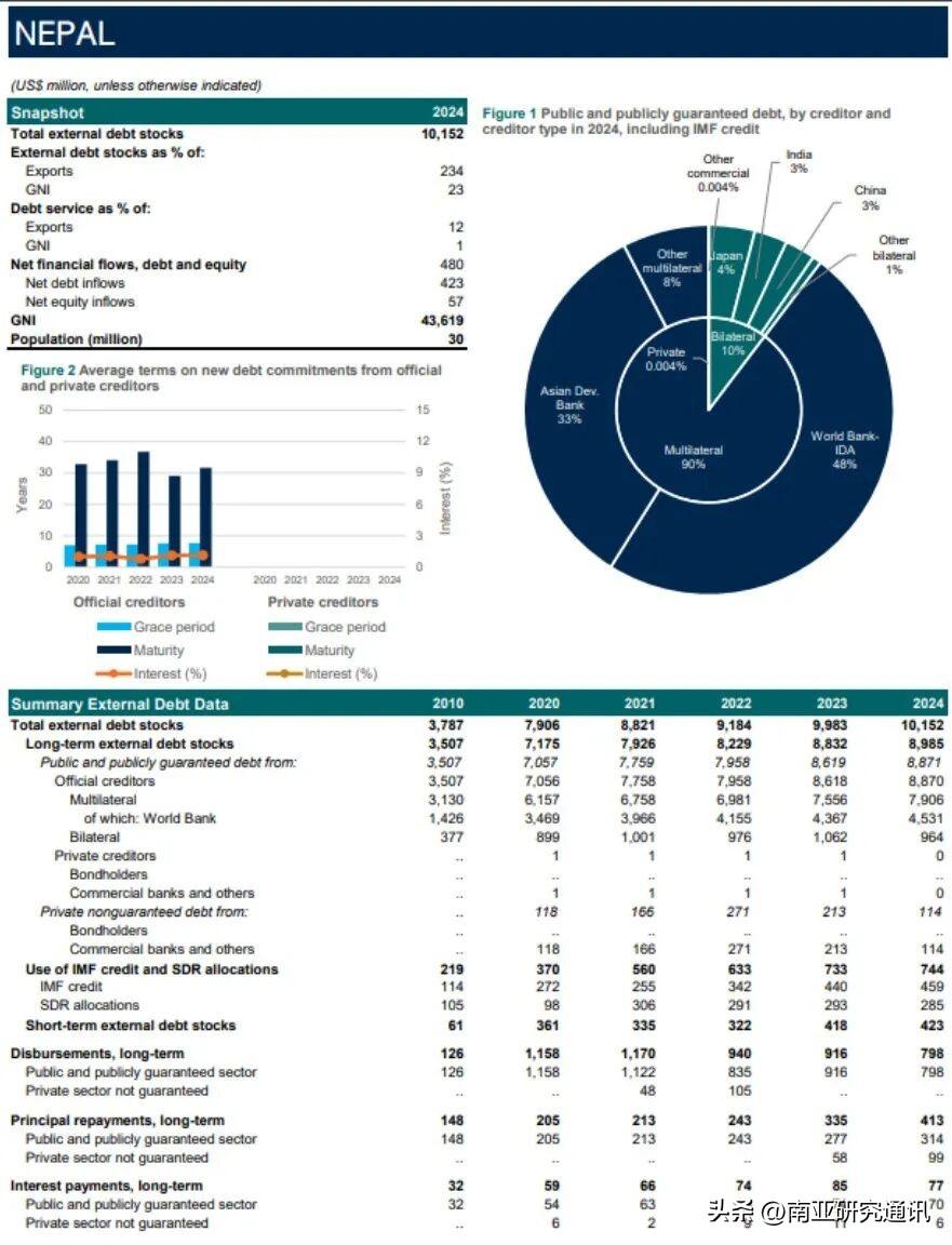 《尼泊尔新闻》2月27日报道,尼近期公共债务飙升逼近国民生产总值(GDP)半数,恐面临长期债务陷阱压力。截至2026年2月中旬,尼公共债务已飙升至2.859万亿尼泊尔卢比(Rs 2.859 trillion),约为该国GDP的46.81%,较19-20财年1.433万亿卢比(Rs 1.433 trillion)债务总额增长近一倍。分析指出,尼公共债务飙升原因主要有二。一是尼政府清偿能力难以抵消债务增长,被迫借款还债,陷恶性循环。二是尼卢比对其他主要货币贬值,使现有外债额外增值930亿卢比(Rs 93 billion)。2025-26财年,尼政府已被迫拨出高达4110亿卢比(Rs 411 billion)用于偿债,超过年预算10%,恐影响学校、医院、道路和农村发展等优先领域资金投入,并致社会福利项目开展面临巨大压力。目前,尼主要参选政党均针对债务问题提出解决方案。尼共(联合马列)承诺借款将专门用于国家级高影响力项目,并将整体债务保持在国家偿还能力的安全比例内,强调借款生产性用途以支持7-9%的年增长率。尼大会党(NC)承诺不会因过度借贷为下届政府带来不公平利息负担。尼共(毛主义中心)则承诺所有借款仅用于生产性领域,明确排除为奢侈品进口或日常行政成本贷款的可能性。