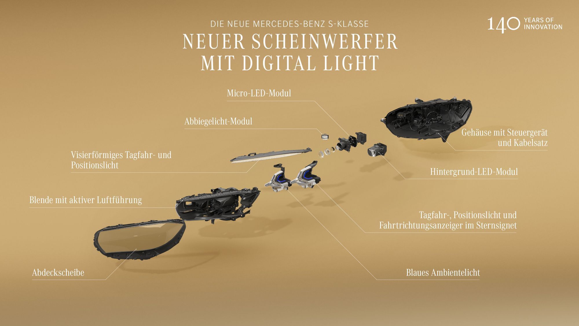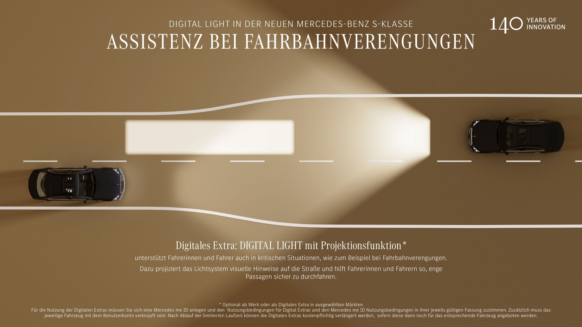 下一代数字灯现正应用于全新S级改款车型,实现更智能的夜间驾驶在黑暗路面或恶劣天气下,S级全新的数字灯系统能立即适应能见度变化:照明提升多达40%,弯道更精准,光输出更强,夜间驾驶更加安全且轻松。全新S级现已采用下一代数字灯具,采用微型LED技术。光模块采用强大芯片,将高分辨率照明场提升约40%,并显著提升亮度。同时,能耗比之前的系统减少了多达一半。大灯单元本身也能节省资源。他们保持了相同的客户体验,但重量减少了四分之一以上。这得益于更紧凑的微型LED设计和单一控制单元的使用。所有软件模块均集成到梅赛德斯-奔驰作系统中,主要由内部开发。另一项重大创新是动态旋转的ULTRA RANGE远光灯,它不再只是直线前方照射,而是调整方向。美国也有部分远光灯,现在工作更为可靠,因为对照明不足道路使用者的检测能力得到了进一步提升。得益于摄像头数据和地图信息的结合,主动转弯灯对路况的反应更加精准。带投影功能的数字灯可作为工作区选装或通过梅赛德斯奔驰商店的数字附加功能购买。除了熟悉的逆向行驶和车道偏离预警投影功能外,S级还配备了新的冷预警系统,雪花会投射到路面上。瓶颈灯已演变为窄车道灯,当检测到车道宽度减少时,所有道路类型自动点亮。带投射功能的数字灯还与驾驶员沟通:当车辆锁车、解锁或发动机熄火时,前灯和尾灯会以短暂的灯光秀响应。动画功能可以通过MBUX激活或关闭,“数字雨”和“星波”灯光秀现已采用全新设计。梅赛德斯-奔驰已在伊门丁根测试与技术中心的新光隧道中测试了S级的这一照明技术,该隧道于2025年初正式启用。无论一天中何时何地、天气如何,那里的专家都能从客户的角度,在可复现条件下评估未来奔驰车型的光分布。这条超过100米长的驾车通道通道拥有一条比例真实的乡村道路,设有点状中心线和侧标——使其成为汽车行业中同类设施中最长的之一。有趣的是,之前的数字灯使用非常小的可切换镜子。每个主大灯共有130万个小后视镜。而新一代S级改款的数字灯则采用了25,000个微LED灯(即现在不再装镜子)。