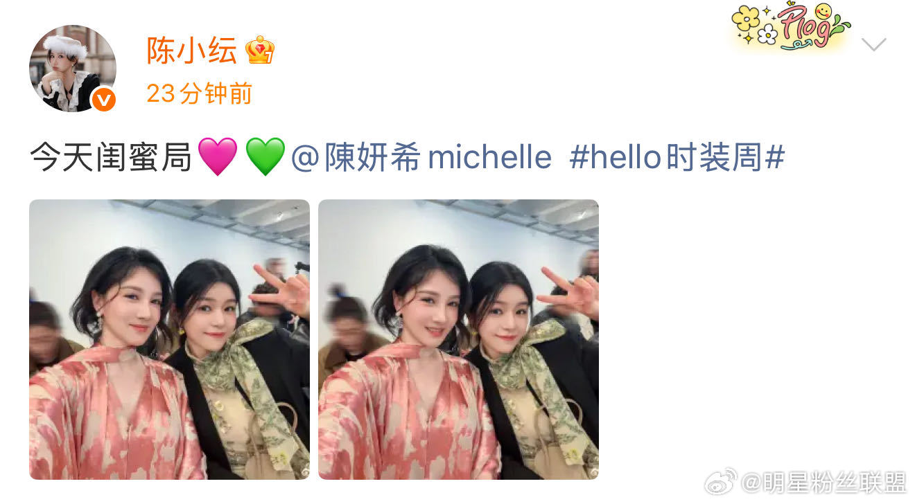 陈妍希陈小纭米兰闺蜜局 在米兰时装周合体同场看秀~狙击蝴蝶闺蜜组贴贴,颜值暴击!