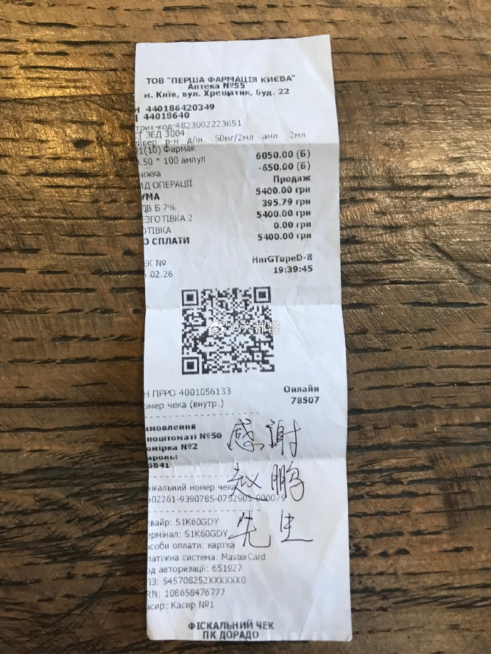 这位赵先生托我给基辅伤员医院购买药品