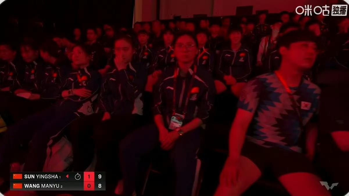 第一局孙颖莎🇨🇳11-8先胜王曼昱🇨🇳 ! 第二局孙颖莎8-2领先,被王曼昱追到了8-5,孙颖莎叫了暂停,暂停叫的很果断,毕竟连胜两局会给自己带来一定的心理优势。 暂停回来曼昱连追三分,8-8平! 但接下来莎莎就连续得分了,最终第二局孙颖莎🇨🇳11-9又拿下了。 图三是女单决赛挑边嘉宾冯天薇🇸🇬 ,后面几张图片是国乒参加大满贯的许许多多、大大小小的队友们[笑哭]。 这是2026WTT新加坡大满贯女单决赛。 目前第三局4-4平!大比分莎莎2-0领先! 评论区继续播报战况!