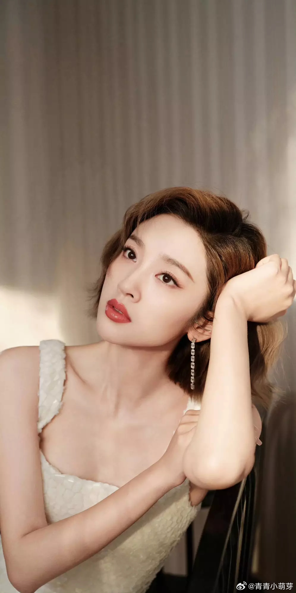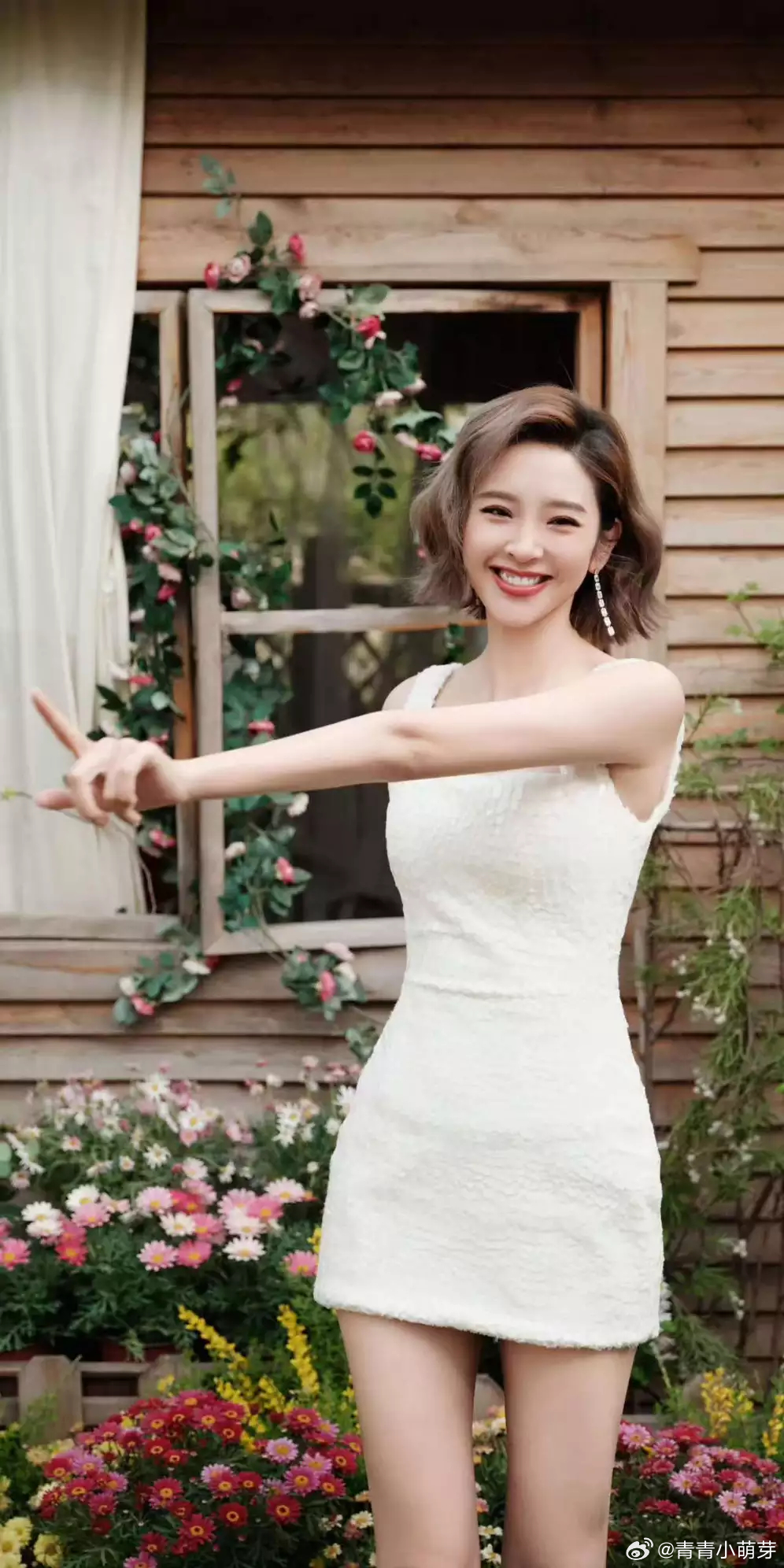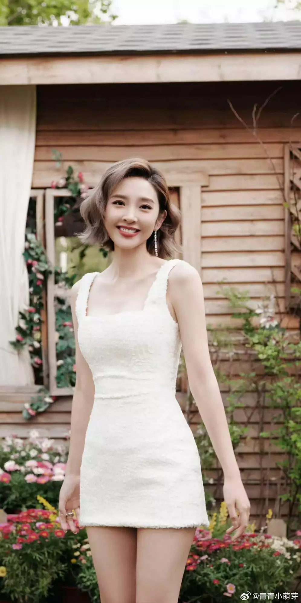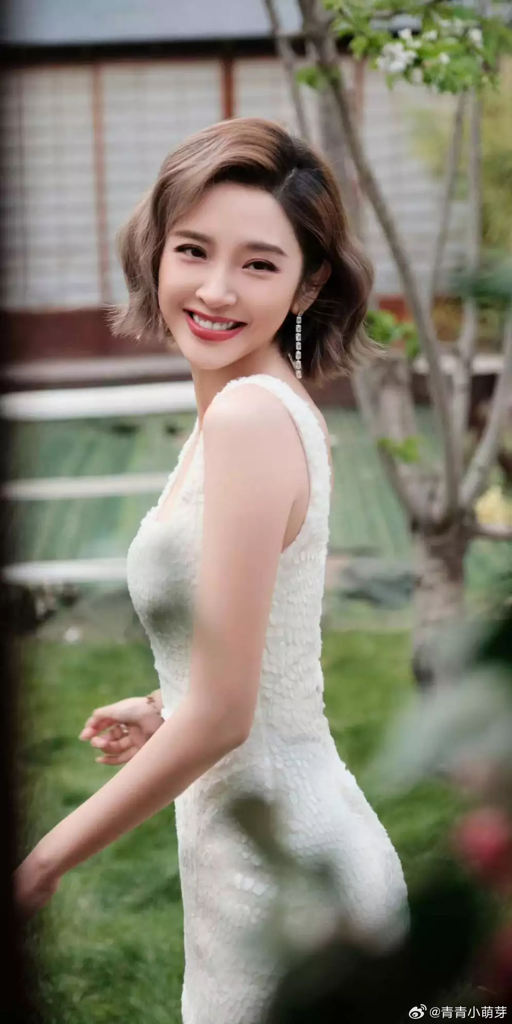 青青娱乐唐艺昕穿白裙配甜美卷发元气满满 皮肤白皙少女感满溢
