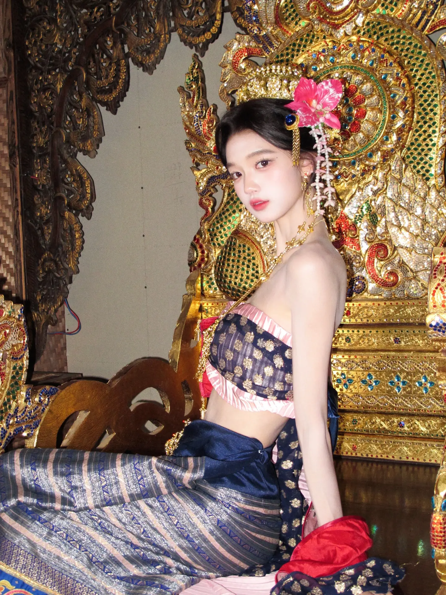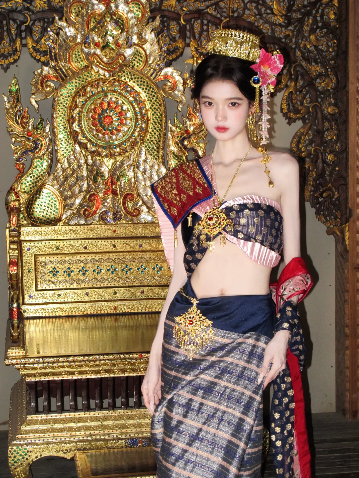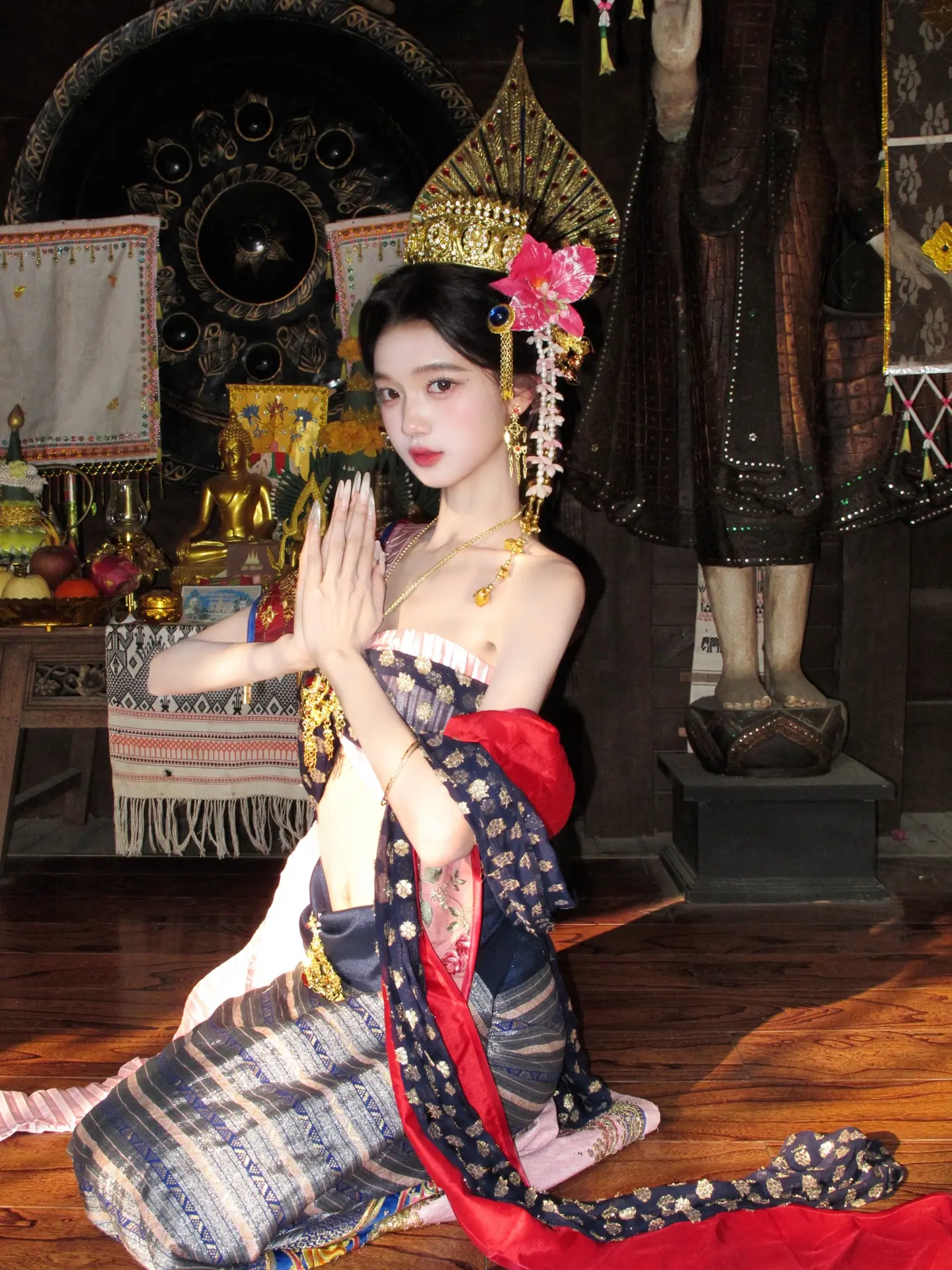 这个穿粉色开叉旗袍的小美女你真的不勒吗?这旗袍也太紧了吧!
