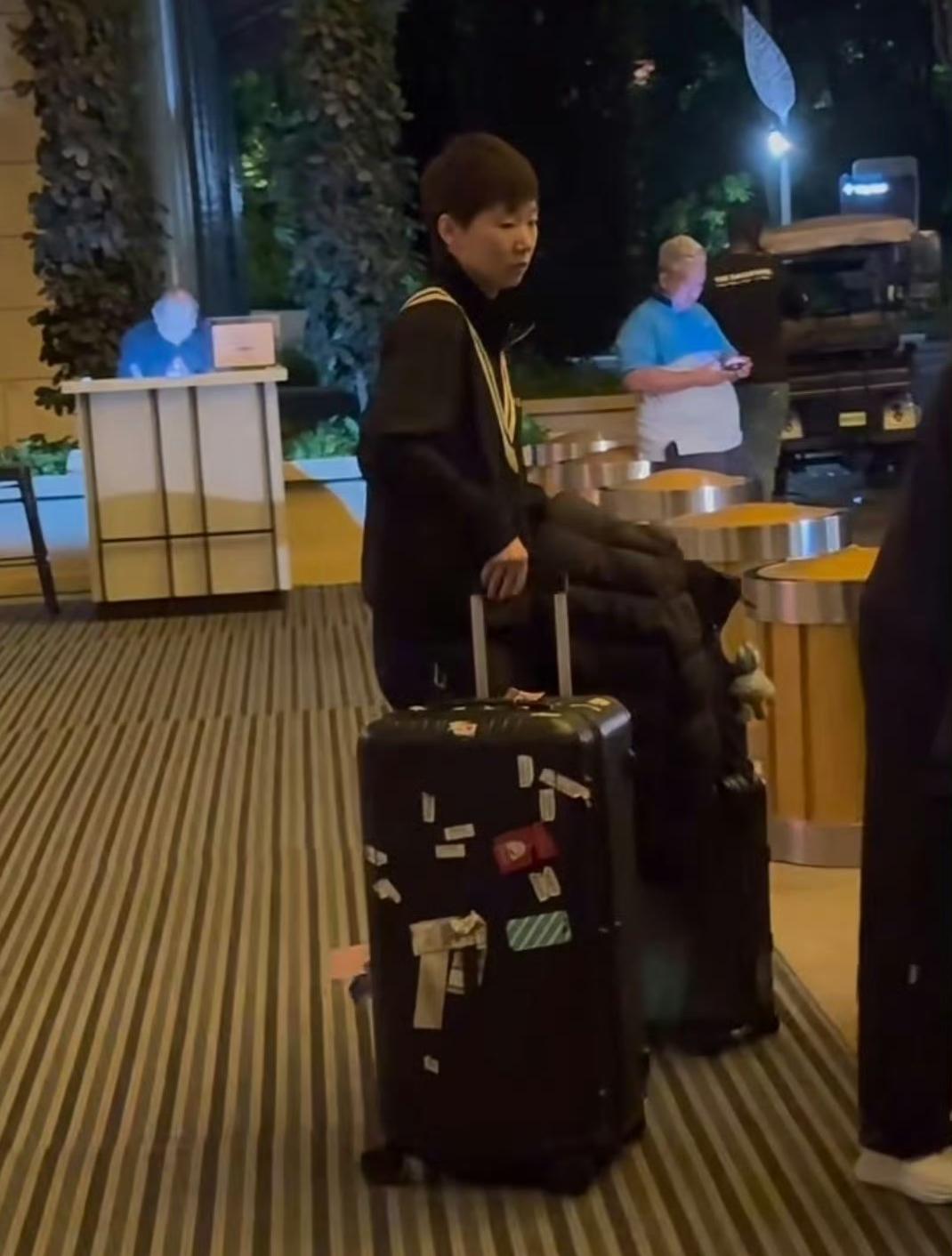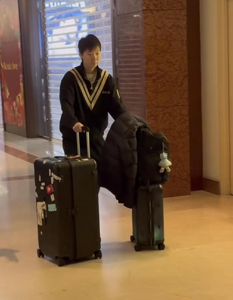 结束WTT新加坡大满贯比赛后,王曼昱今日早上跟随国乒团队一起从酒店出发准备飞回北