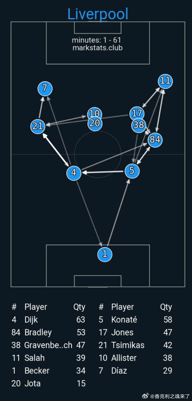 萨拉赫不再是最靠前的前锋与萨拉赫形成联系的球员减少萨拉赫接到的向前传球减少右后卫从更靠后的位置发起传球