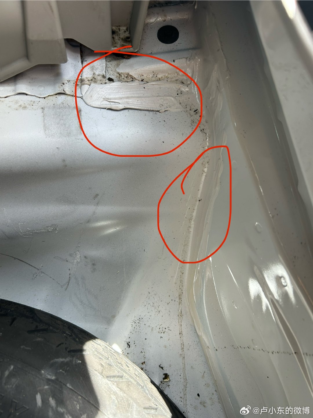 一辆修复得不错的后围板切割普锐斯,不知道各位能不能看得出来?仔细观察图 1 备胎坑和后围板的表面质感,原车应该是略带颗粒的哑光面,而后围板却是反光亮面;同时对比我画红圈儿的两处钣金胶,它们的颜色、质感都完全不同。纽村多少还是落后了些,无论怎么修,基本上都是人工打胶为主。反观国内,那些二手网站上甚至有卖模仿各种原厂打胶设备痕迹的现成的胶条。国内在二手车精修复造假这一块,绝对是世界 No.1。更不要说图 3 那种地方,新的后围板上面的标签贴纸的印都不愿意蹭蹭干净再去喷漆... 这边儿的人干活的态度真的是有点问题的。不过对于我这种工作来说,识别事故车的难度的确是低了不少。谢谢各位的粗糙做工。