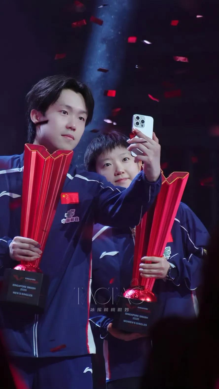 2026年新加坡WTT大满贯,王楚钦获得男单冠军,这是他的第五个单打大满贯冠军[赞][赞] 孙颖莎获得女单冠军,这她第五个单打冠军[赞][赞][赞] 这就是缘分这么巧合,莎头同时获得一样多的冠军[赞][赞] 而且实现了顶峰相见,圆了球迷粉丝的梦,3月1日的夜晚球迷粉丝们太幸福了。[大笑][大笑] 这次没有兼混双,依然再现混双的合影。祝福莎头越来越好