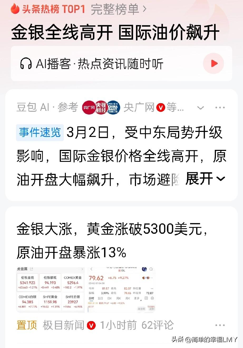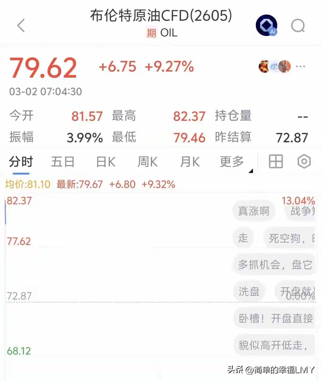能源危机要来?国际油价开盘飙升13%! 2月28日,美国和以色列对伊朗发动军事打击,伊朗迅速展开大规模反击。战火如野火般在波斯湾蔓延,局势剑拔弩张,仿佛一触即发的火药桶,随时可能将中东推向危险的深渊。 而这一场硝烟,也瞬间挑动了全球石油市场最敏感的神经,让国际油价上演了一场“疯狂的飙升”。北京时间3月2日7时,期市开盘的钟声仿佛是号角,拉开了油价暴涨的序幕。 国际油价如同脱缰的野马,一度飙升13%。纽约商品交易所4月交货的WTI原油宛如插上翅膀,跃升至75.33美元/桶的高位。洲际交易所5月交货的伦敦布伦特原油也不甘示弱,稳稳站上82美元/桶大关。 那跳动的数字,仿佛是市场剧烈的心跳,让全球投资者都为之屏息。虽然后来两油涨幅有所收窄,但截至发稿,WTI和布伦特仍分别报72.78美元/桶和79.67美元/桶,涨幅分别达到8.59%、9.33%。 如此大幅的波动,怎能不让人惊叹?为何中东局势的变动,会对国际油价产生如此巨大的影响?答案就在霍尔木兹海峡。这条位于亚洲西南部的水道,虽长度不过百余公里,最窄处仅约40公里,却有着“世界油阀”的美誉。 它宛如一条纽带,连接着波斯湾与印度洋,是沙特阿拉伯、伊拉克、卡塔尔、阿联酋等中东产油国原油出口的必经之路。全球约20%的石油运输量都要通过这里,每日运量高达1800 - 2100万桶,说它是全球能源的“生命线”,那是一点也不为过。 然而,如今这条“生命线”却因战火而陷入危机。2月28日晚,伊朗伊斯兰革命卫队宣布禁止任何船只通过霍尔木兹海峡。一时间,海峡上原本繁忙的油轮纷纷停下了脚步,仿佛时间都在此刻凝固。 曾经川流不息的海上通道,瞬间变得冷冷清清,宛如一座被遗弃的空城。3月1日,一艘试图“闯关”的油轮更是被击中,开始沉没,让本就紧张的局势雪上加霜。这不禁让人想问,霍尔木兹海峡的关闭,究竟会给全球石油市场带来怎样的连锁反应? 从市场规律来看,供应与需求是决定价格的关键因素。霍尔木兹海峡的关闭,无疑是对全球石油供应的一次“重创”。中东地区原油外运中断,就如同打开了潘多拉的盒子,让国际能源市场陷入了严重短缺的恐慌之中。 油轮运费和保险费如同坐了火箭一般飙升,而这一切,都将最终反映在油价上。有专家预测,在这种情况下,国际油价可能会飙升到100 - 110美元/桶,并长期处于高位震荡状态。 想想看,油价的大幅上涨,就像多米诺骨牌,会引发一系列的连锁反应。运输成本增加,企业生产成本上升,物价也会随之上涨,最终影响到我们每一个人的生活。这难道不是一场牵一发而动全身的能源危机吗? 美国总统特朗普在3月1日表示,对伊朗的军事行动可能持续四周左右,“或者更短”。但无论时间长短,这场战争对全球石油市场的影响都已不可避免。如果战事持续,伊朗是否会进一步加强对霍尔木兹海峡的管控? 其他产油国又是否会出手干预,这些都是未知数,也正是市场担忧的所在。回顾历史,霍尔木兹海峡一直是中东局势的“晴雨表”,也是全球石油市场的“风向标”。每一次中东局势紧张,它都会成为各方关注的焦点。 而这一次,它更是被推到了风口浪尖。伊朗关闭海峡,虽说是在反击美以的军事打击,但这一举措也如同双刃剑,在对对手造成威慑的同时,也会对自身经济产生影响。 毕竟,伊朗约90%的石油出口都依赖于霍尔木兹海峡,关闭海峡意味着每天可能会损失超1亿美元的出口收入。可在国家主权和安全面前,伊朗又怎能轻易退缩?这种两难的抉择,也让我们看到了中东局势的复杂性和残酷性。 对于全球经济而言,油价的波动更是影响深远。高油价会导致通胀上行,让主要经济体面临更大的经济压力。航空、物流等行业,更是会因燃油成本的增加而举步维艰。 而另一方面,油价的上涨也可能会推动新能源产业的发展。毕竟,当传统能源变得昂贵且不稳定时,人们自然会将目光投向更加清洁、可持续的新能源。这究竟是危机,还是机遇?或许,只有时间才能给出答案。 中东局势依旧紧张,霍尔木兹海峡的“命运”尚未可知。而这场能源风云,也将继续考验着全球各国的智慧和应对能力。让我们拭目以待,看看未来的能源市场将走向何方,中东局势又会如何演变。