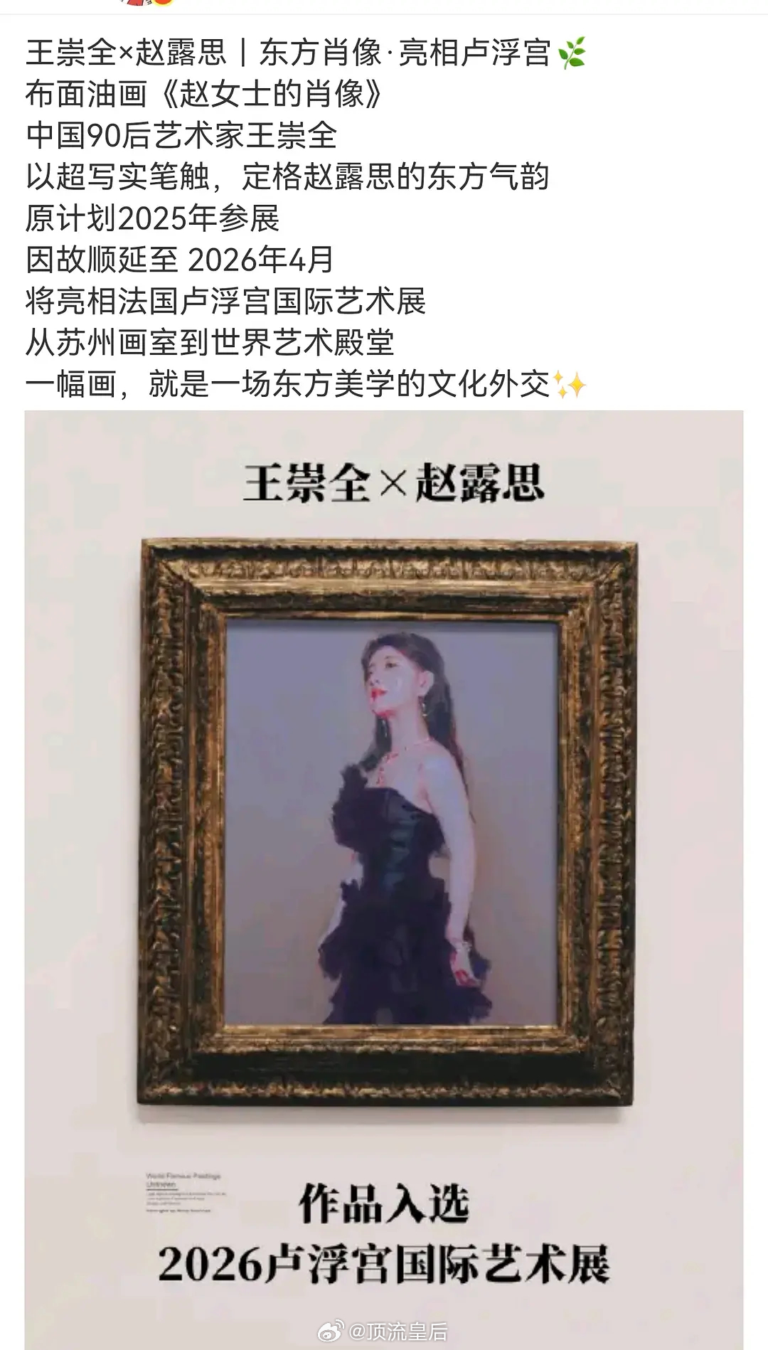 赵露思油画获奖受邀在卢浮宫展出,真美呀。