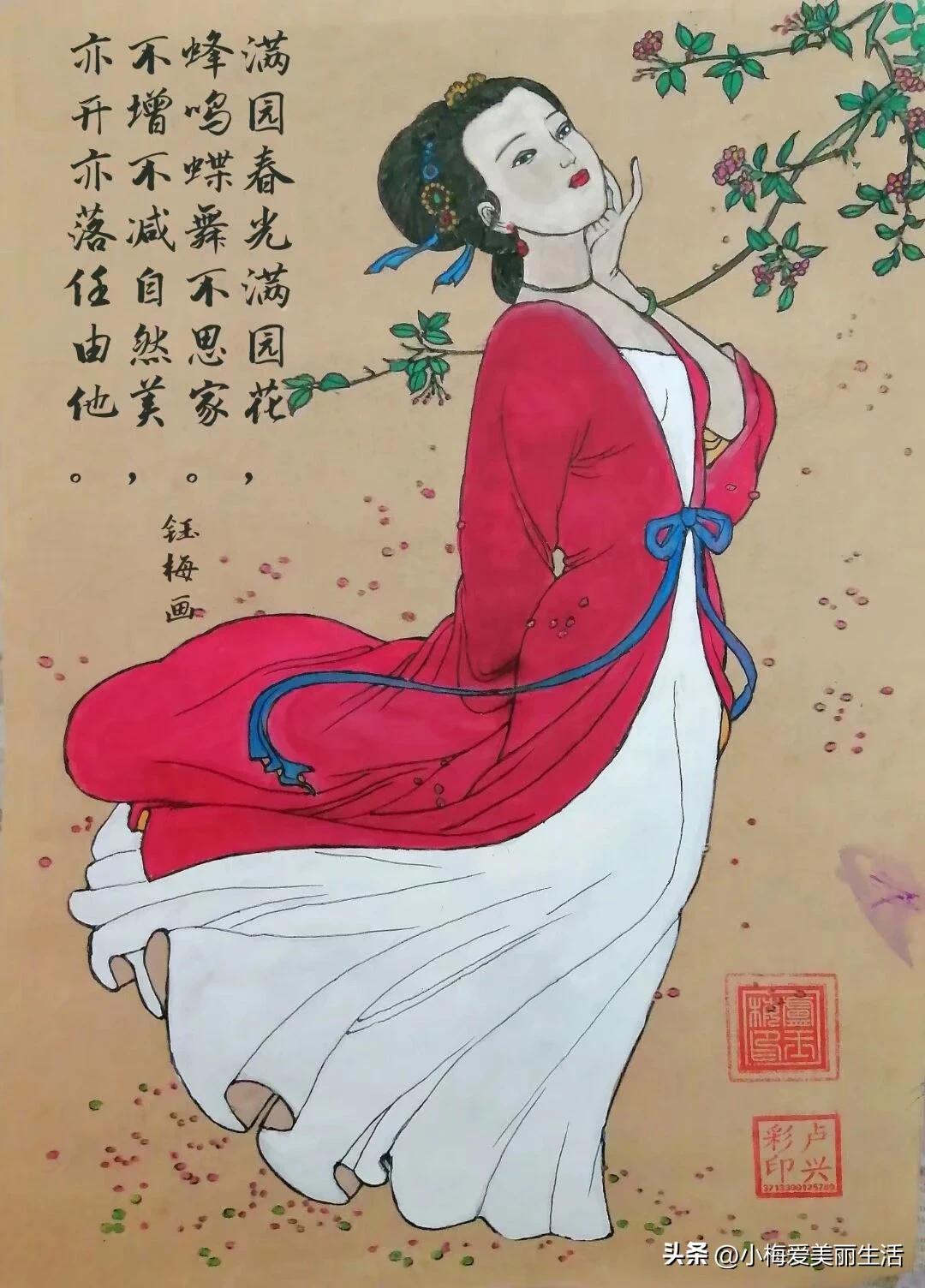 花前月下行,美人如画里。