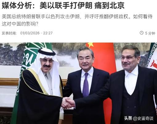 法媒刊文声称,美以联手打在伊朗,痛在北京身上!3月2日,法新社刊文表示,如同美国今年1月抓捕时任委内瑞拉总统马杜罗,中国面对华盛顿再度朝另一个主要盟友下手,看似也无力阻止,这无疑削弱了中国在中东的影响力。伊朗接下来会发生什么事,目前尚不明朗,但中国对伊朗的影响力可能大幅受限。 首先得说清楚,美以对伊朗的军事打击并非突然发难,当地时间2月28日上午,以色列和美国就已正式对伊朗发起军事行动,截至3月1日深夜,伊朗首都德黑兰还不时传来爆炸声,战火一直没停。 以色列国防军在3月1日下午宣布对伊朗发动新一轮空袭,当晚德黑兰就传出持续不断的爆炸声,以军随后发表声明,称有超过100架以色列空军战斗机参与此次行动,目标直指伊朗伊斯兰革命卫队的数十个总部,包括其情报部门、空军和内部安全部门。 伊朗方面没有坐以待毙,很快就展开了大规模反击,伊朗伊斯兰革命卫队1日宣布,将对美以军事基地发动“历史上最猛烈的进攻行动”,截至当天深夜,反击行动已进行至第九轮,至少27个美军在中东及周边地区的军事基地遭到袭击。 伊朗伊斯兰革命卫队还对外宣称,美军的“亚伯拉罕·林肯”号航母遭到己方4枚弹道导弹袭击,同时摧毁了二十余架美以无人机,不过美军随后就否认了航母遭袭的说法,称伊朗发射的导弹甚至没有接近该舰。 更让人揪心的是,这场冲突已经造成了大量人员伤亡,伊朗方面称反击行动已造成560名美军伤亡,而美军公布的信息则显示,有3名美军现役人员死亡、5人重伤,以色列境内也有至少11人因伊朗的反击身亡,数百人受伤。 除此之外,伊朗国内还发生了重大变故,当地时间3月1日,伊朗官方正式宣布,最高领袖哈梅内伊于2月28日美以的袭击中遇害身亡,武装部队总参谋长、防长等高官也在此次袭击中不幸遇难。 为了应对局势,伊朗最高国家安全委员会秘书拉里贾尼在1日宣布,当天成立伊朗临时领导委员会并选举新的最高领袖,伊朗总统佩泽希齐扬、司法部长和宪法监护委员会一名法学家将共同领导国家,佩泽希齐扬随后也证实,临时领导委员会已于当日开始运作,直至选出新的最高领袖。 面对这场愈演愈烈的冲突,中国并非像法媒所说的那样“无力阻止”,联合国安理会在2月28日就中东地区军事冲突升级举行紧急会议,中国常驻联合国代表傅聪在会上明确发了言。 傅聪表示,中方对中东局势骤然升级深表关切,强烈反对并谴责在国际关系中使用或威胁使用武力,同时强调伊朗及其他地区国家的主权、安全和领土完整必须得到尊重,中方对冲突导致大量平民伤亡深感痛心,呼吁各方切实保障平民安全,避免攻击民用设施。 傅聪还明确指出,武力不是解决国际争端的正确方式,只会加剧仇恨和矛盾,中东局势升级外溢不符合任何一方利益,中方呼吁有关各方立即停止军事行动,尽快恢复对话谈判,回到政治解决的正确轨道上来,中方也愿意同国际社会一道,凝聚促和努力,推动中东地区早日恢复和平稳定。 法媒忽略的是,中伊两国的关系有着深厚的基础,并非轻易就能被外部冲突动摇,两国友好交往可追溯至公元前2世纪,1971年8月16日正式建交,2016年还建立了全面战略伙伴关系。 近年来,中伊各领域合作稳步开展,2024年两国贸易额达到133.7亿美元,2021年3月双方还签署了全面合作计划,2022年1月正式启动落实工作,人文交流也十分密切,德黑兰大学等伊朗高校设有孔子学院,中国多所高校也开设了波斯语专业。 而且中国在中东地区的影响力,从来都不是靠“控制”盟友来实现的,此前中国成功促成伊朗与沙特恢复关系,就被法新社自己打上了“中国制造”的标签,这足以说明中国在中东的影响力,源于自身的中立立场和促和努力。 法媒拿美国抓捕马杜罗类比此次事件,本身就站不住脚,两次事件的背景、性质完全不同,委内瑞拉和伊朗的局势也有着本质区别,不能简单混为一谈。 至于伊朗接下来的走向,确实充满未知,临时领导委员会的运作、新最高领袖的选举,以及对美以的反击是否会持续,都会影响局势的发展,但可以肯定的是,中国不会因为这场冲突就削弱与伊朗的合作,也不会放弃在中东地区的促和努力。 中国一贯坚持不干涉他国内政的原则,在美以与伊朗的冲突中,中方始终站在和平一边,积极呼吁停火谈判,这不是“无力阻止”,而是尊重各国主权的负责任表现,更是大国担当的体现。 法媒的这番言论,本质上是低估了中国的战略定力,也误解了中国与盟友的相处模式,中国的影响力从来都不是靠“强硬干预”得来的,而是靠长期的真诚合作和公正立场积累的,这场冲突或许会带来短期的波动,但绝不会动摇中国在中东的地位,更不会让中国对伊朗的影响力大幅受限。