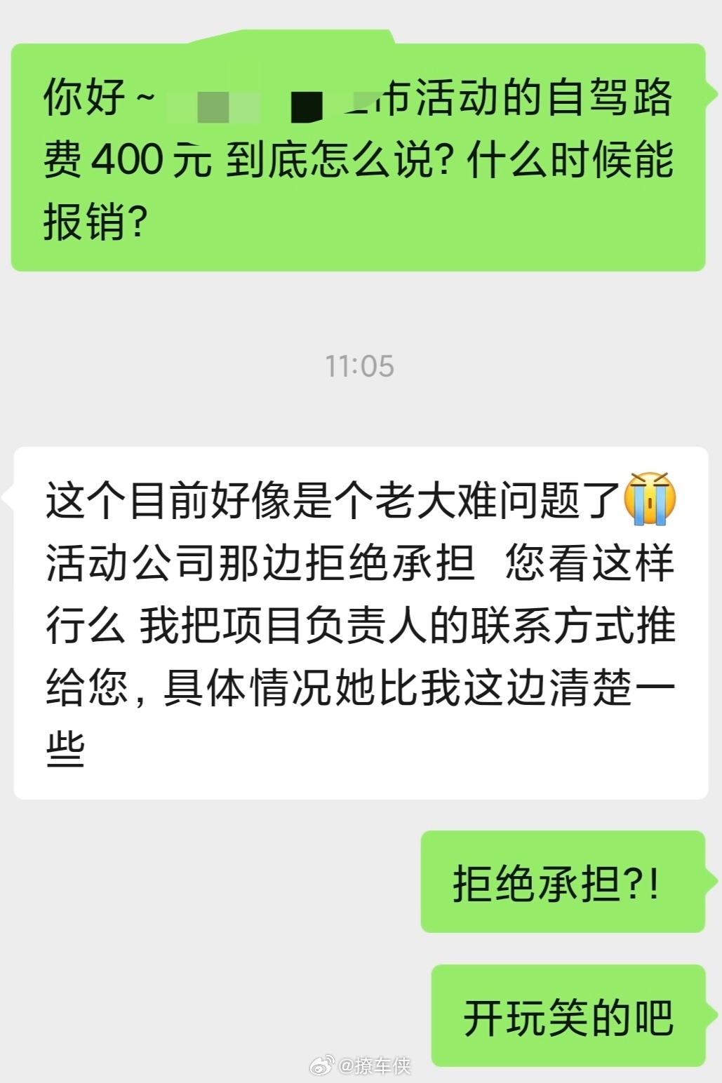14年的活动,现在车马费不结算,路费也不报销,看到这样的回复你说气人不?好歹是个国内大厂牌,怎么能干出这样的事?!最后给你们留点面子打个码,为了几百块钱真不值得