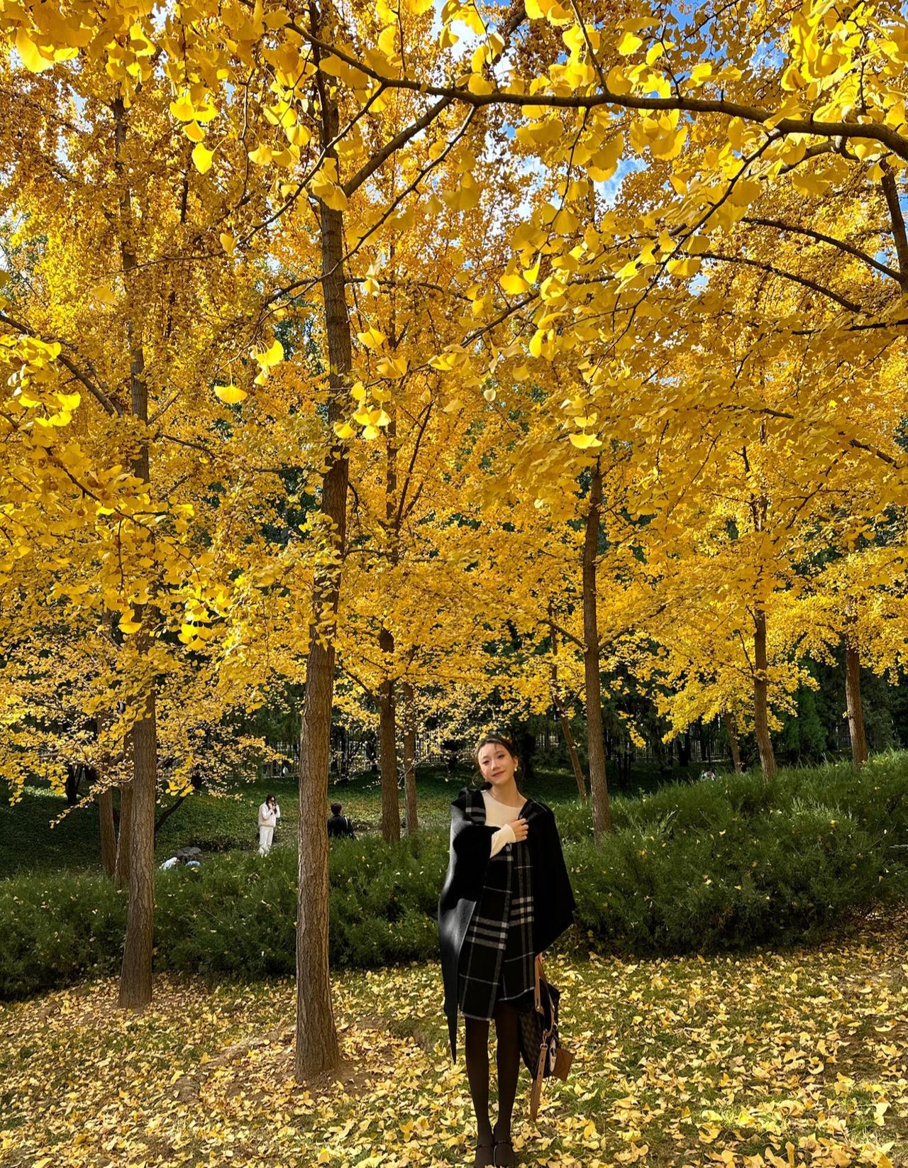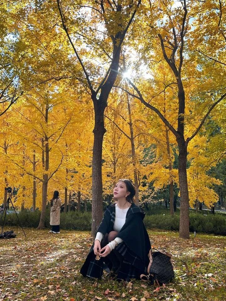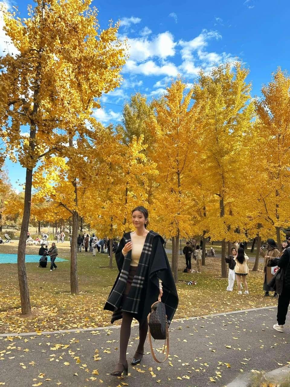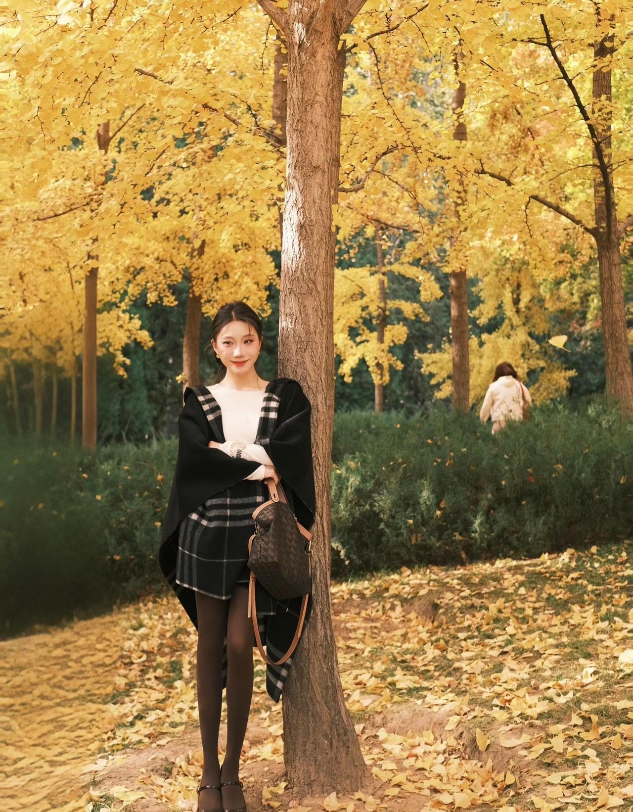 这套穿搭在银杏林里太有“秋日温柔知性风”的氛围了!黑大衣搭格纹围巾自带温暖质感,米白内搭+棕裙的配色刚好呼应秋景,搭配玛丽珍鞋添了精致细节,是舒服又耐看的秋日出街风格~大衣高级配色 温柔系大衣搭配