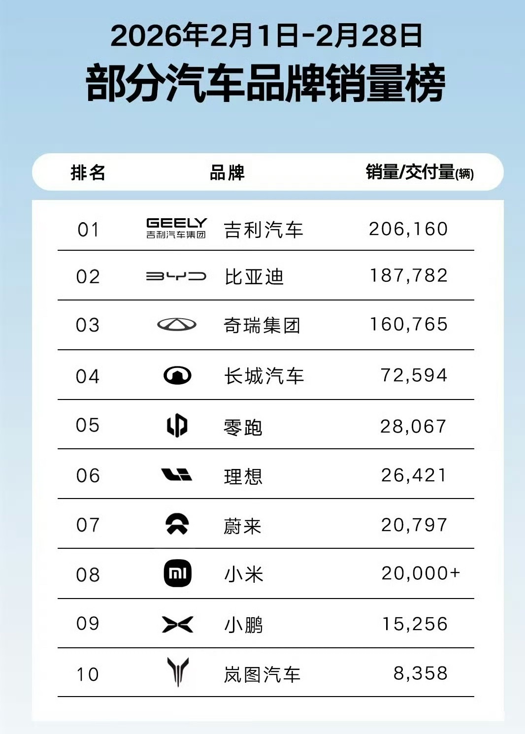2月份汽车销量,小米稳定2w台!而且新一代小米su7还没开卖!依旧稳定!