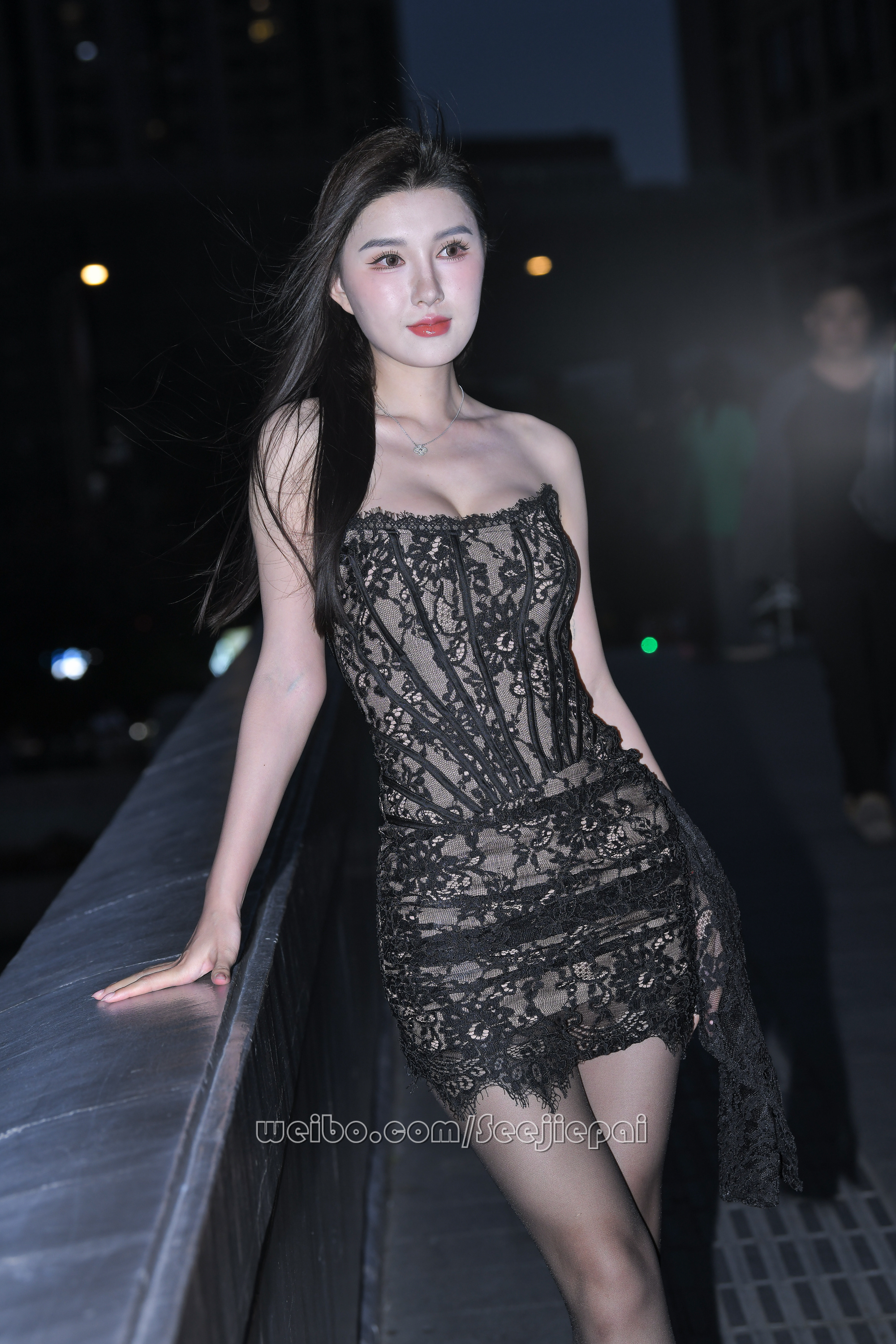 黑色皮裙甜美靓丽~~