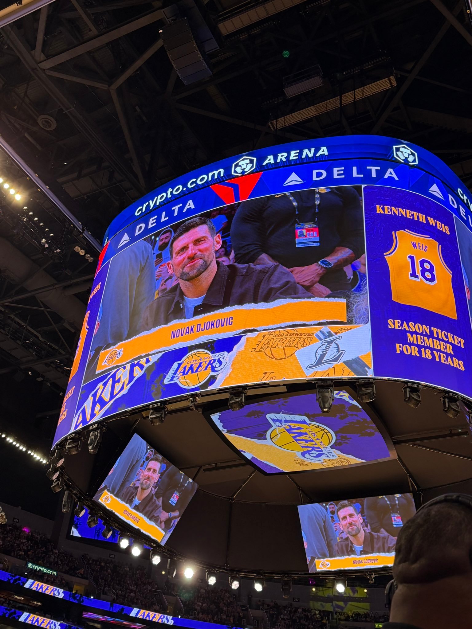 德约科维奇观战湖人比赛德约科维奇造访NBA,观看湖人队vs国人队的比赛✌️